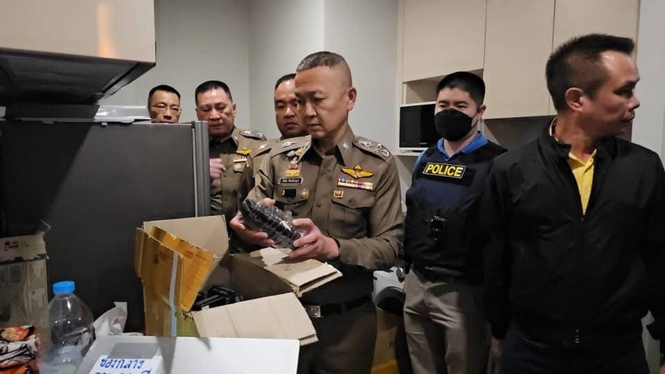 พล.ต.อ.ธัชชัย กล่าวว่า วันนี้จับได้ 6 คน ซึ่งเป็นผู้ดูแลระบบ ส่วนผู้ทำหน้าที่หลอกลวงประชาชนอยู่ต่างประเทศ ซึ่งเป็นบุคคลอีกหนึ่งกลุ่มที่ทำหน้าที่พูดคุยกับคนที่ต้องการหลอกลวงเอาเงิน จากการตรวจสอบพบว่าผู้ต้องหาเข้ามาด้วยวีซ่านักเรียนและนักท่องเที่ยว โดยเข้ามาได้เพียง 4 เดือน เช่าคอนโดมิเนีนมแห่งนี้ได้ 2 เดือน วันนี้จับหัวหน้าขบวนการคือ นายหยางชู และอยู่ระหว่างการติดตามตัวผู้ร่วมขบวนการอีก 3 คน มาดำเนินคดีตามกฎหมาย