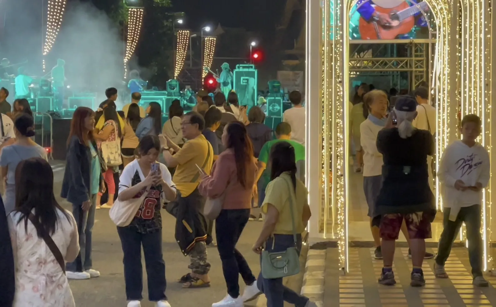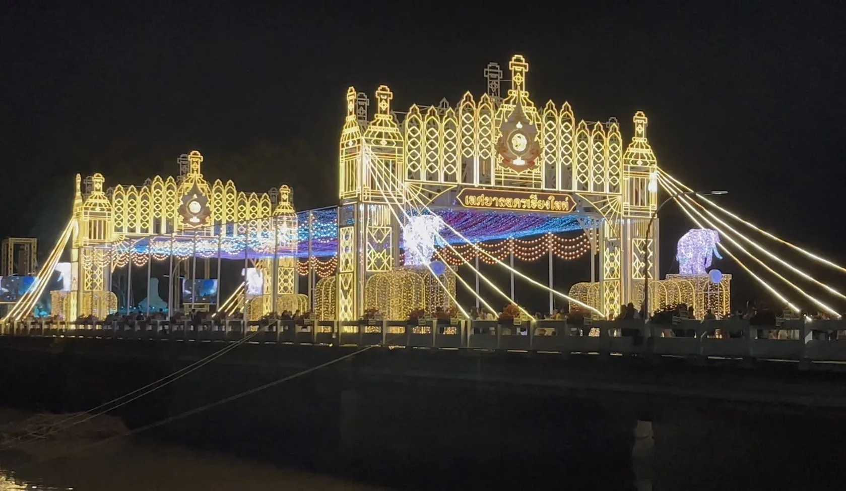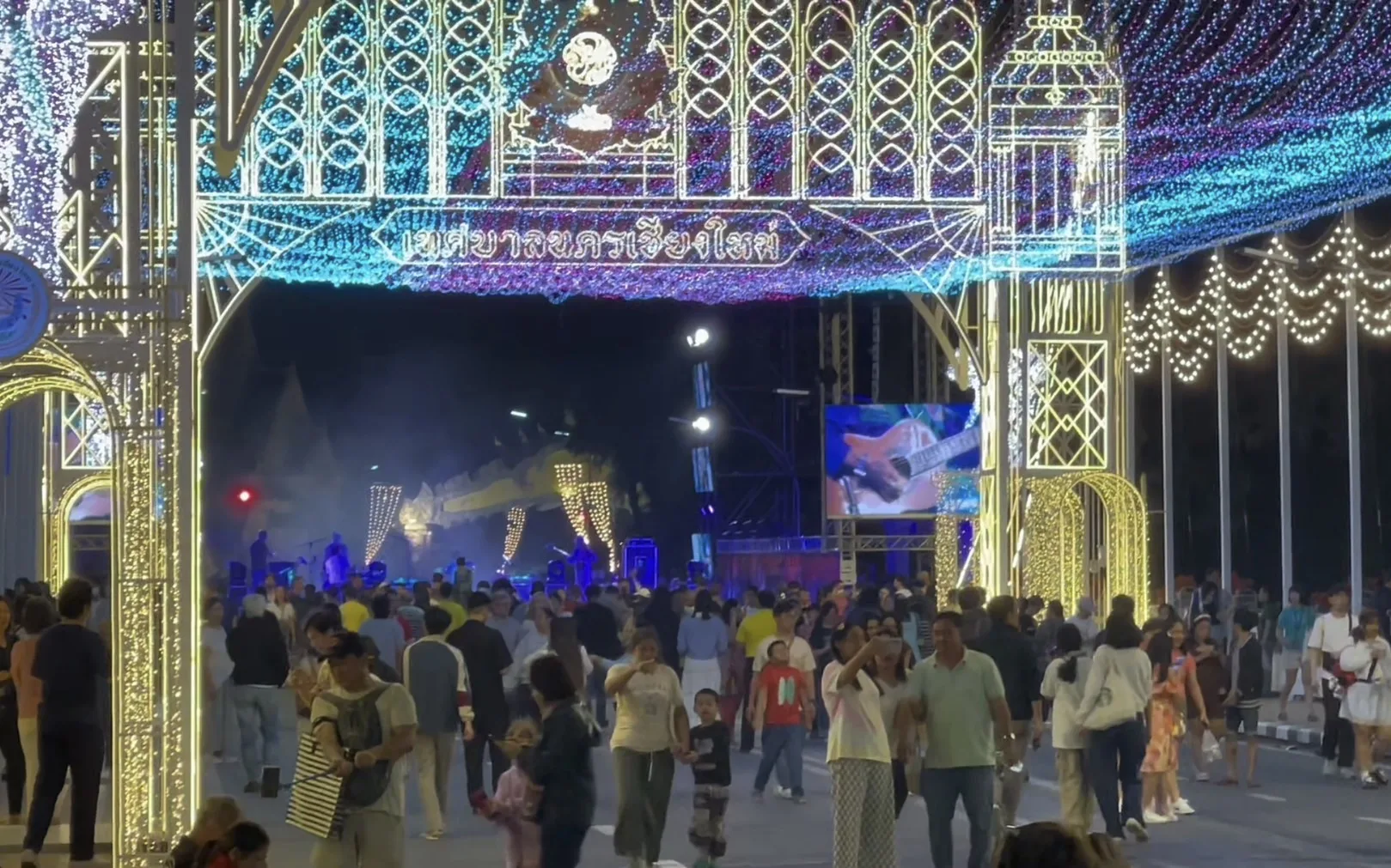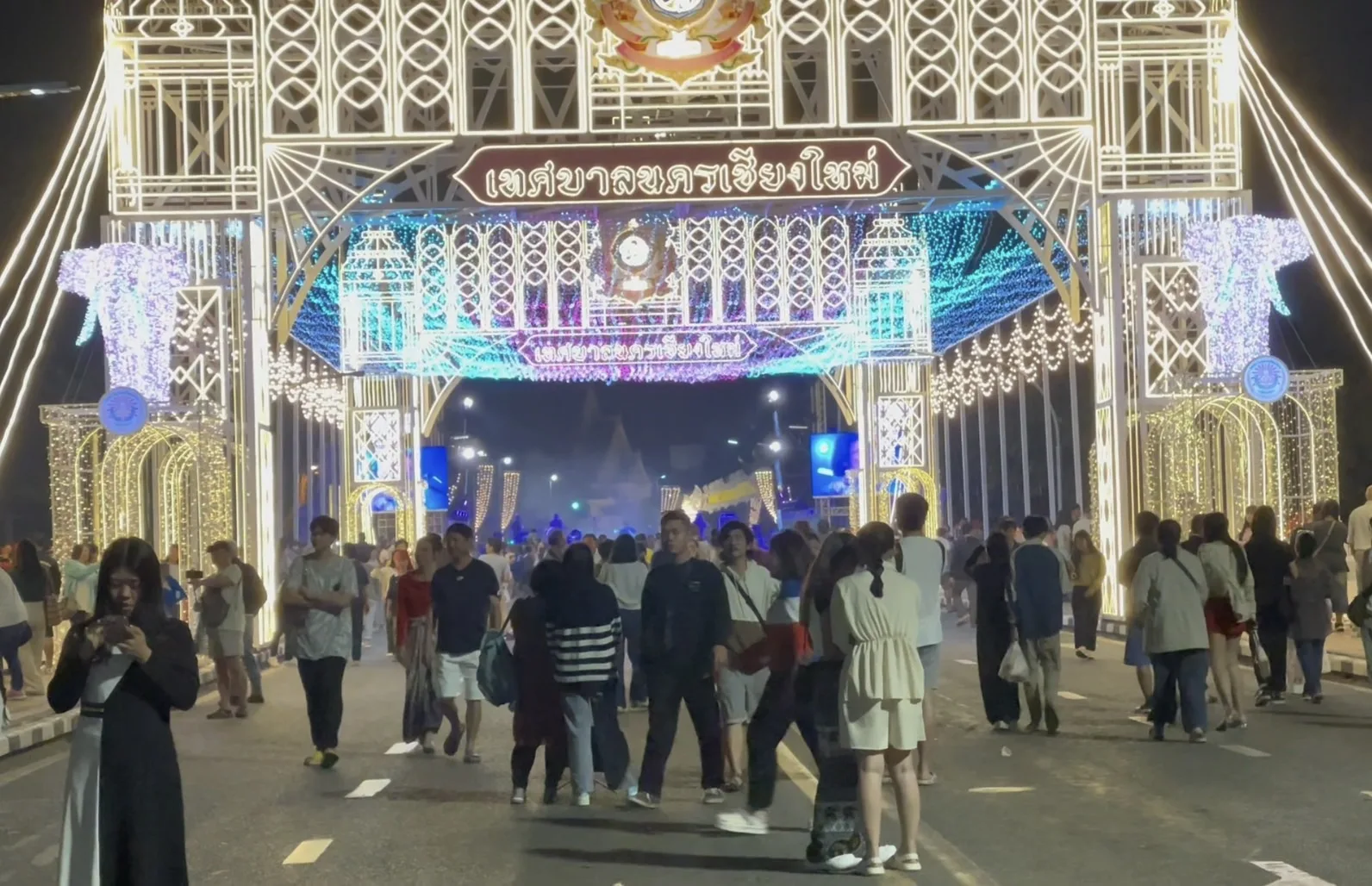 ขณะที่ในวันนี้ ที่บริเวณสะพานนวรัฐ อ.เมืองเชียงใหม่ ซึ่งเป็นอีกจุดแลนด์มาร์ค ที่มีการจัด “ซุ้มประดับไฟมงคล” เป็นอุโมงค์ไฟประดับสวยงาม และได้มีการปิดถนนเพื่อให้ประชาชนและนักท่องเที่ยวได้เข้ามาเที่ยวชมถ่ายภาพ และชมการแสดง ทำให้มีนักท่องเที่ยวเดินทางมาเที่ยวกันอย่างเนืองแน่นทั้งชาวไทยและชาวต่างชาติ โดยต่างพากันถ่ายภาพเซลฟี่กับซุ้มไฟที่ตกแต่งแสงสีอย่างสวยงามตระการตา นอกจากยี้ตรงจุดด้านหน้าจวนผู้ว่าราชการจังหวัดเชียงใหม่ ยังได้มีการจัดแสดงดนตรีเพื่อให้เข้ากับบรรยากาศของงานอีกด้วย