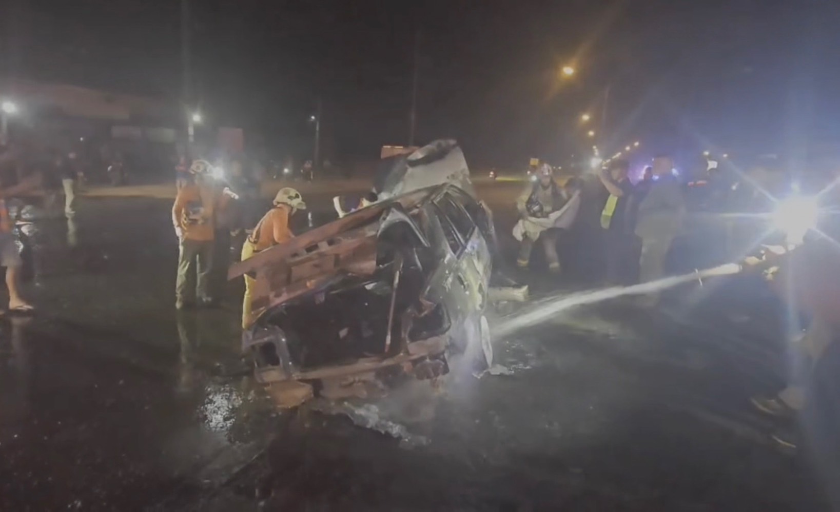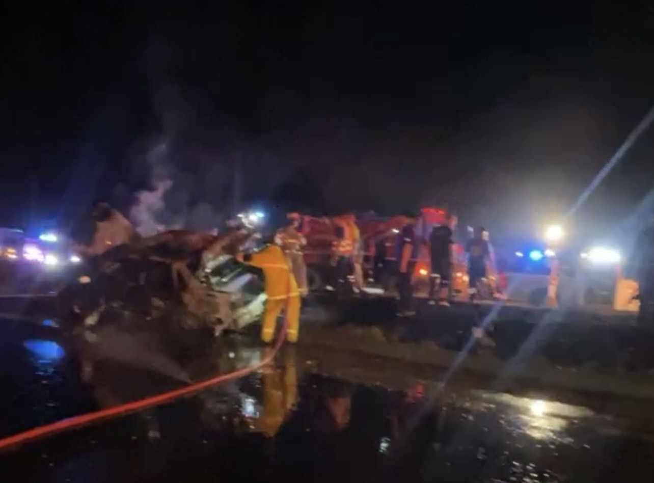 โดยที่เกิดเหตุพบไฟลูกไหม้รถยนต์เก๋งจนท่วมทั้งคัน ทางเจ้าหน้าที่ทราบว่ามีคนติดภายในรถและเสียชีวิต โดยใช้เวลานานกว่าครึ่งชั่วโมงในการระงับเหตุ และยังอยู่ในระหว่างการตรวจสอบ เคลียร์เส้นทาง ส่วนสาเหตุของอุบัติเหตุในครั้งนี้ จะได้มีการตรวจสอบอีกครัั้ง