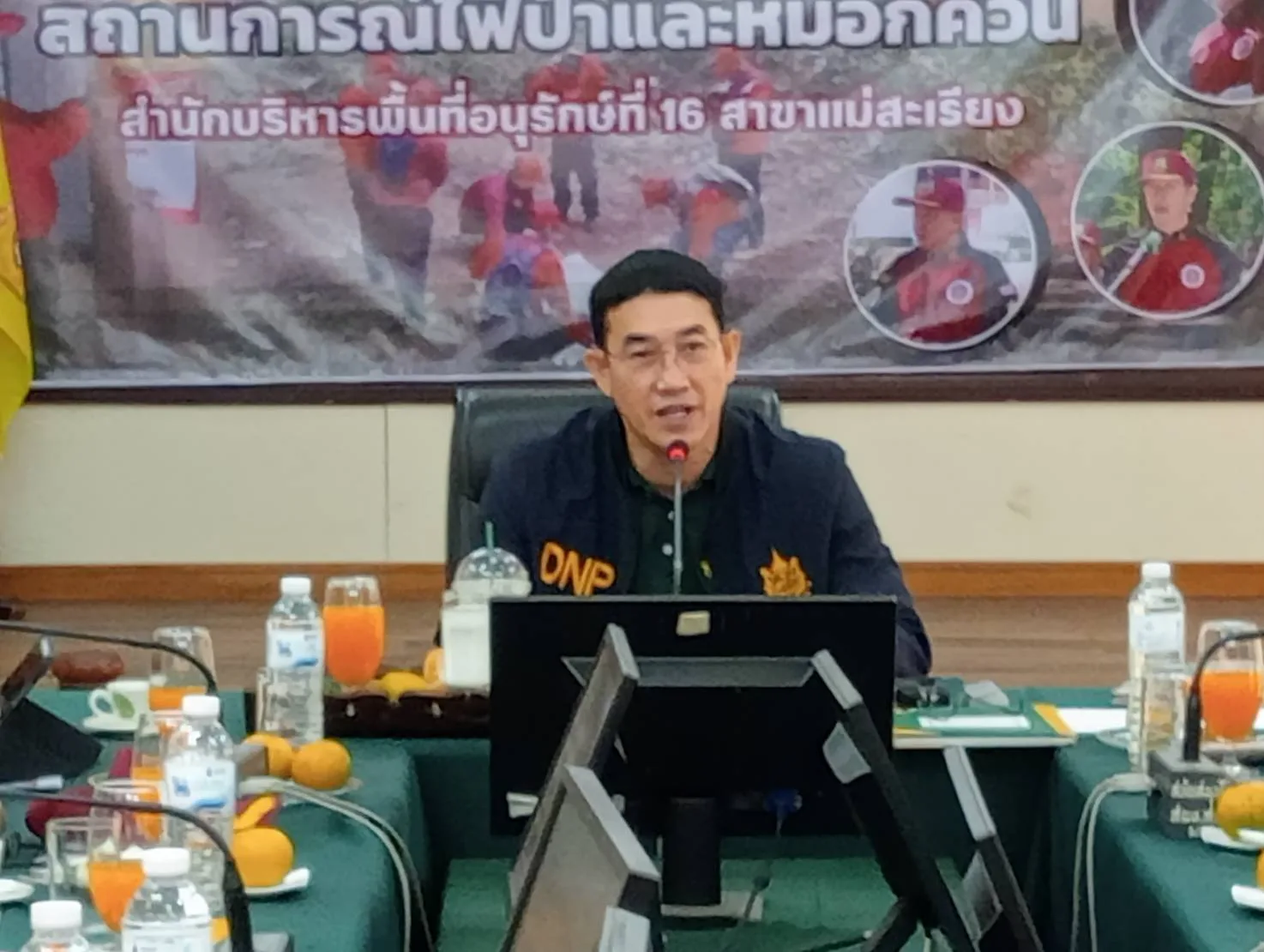 อธิบดีกรมอุทยานแห่งชาติ สัตว์ป่า และพันธุ์พืช ได้ให้สัมภาษณ์กับสื่อมวลชน ภารกิจการลงพื้นที่ในครั้งนี้ว่า มาติดตามการเตรียมความพร้อมการกำหนดจุดเฝ้าระวัง ในการป้องกันและช่วยการดับไฟ ซึ่งจังหวัดแม่ฮ่องสอนมีศูนย์บัญชาการกลุ่มป่า 2 กลุ่ม ปีที่ผ่านแม่ฮ่องสอนมีจุดฮอตสปอตค่อนข้างสูง บวกกับ อิทธิพลหมอกควันข้ามแดนจากประเทศเพื่อนบ้านส่งผลทำให้มีค่า PM 2.5 สูงเกินมาตรฐาน ซึ่งในปี 2568 ได้เน้นย้ำการมีส่วนร่วม เพื่อแก้ไขปัญหาไฟป่าอย่างเป็นระบบและตรงจุด อีกทั้งยังเป็นการลดอัตราการเกิดไฟป่าอีกด้วย ซึ่งเชื่อมั่นว่า หากทุกภาคส่วนร่วมแรงร่วมใจกันปฏิบัติการเชิงรุก จุดฮอตสปอตจะลดลง โดยเฉพาะพื้นที่เผาไหม้ ทั้งนี้ปัญหาทุกอย่างจะคลี่คลาย หากพี่น้องประชาชนให้ความร่วมมือในเรื่องการงดเผา ในกรณีช่วงที่ค่า PM 2.5 สูง มีการบริหารจัดหารพื้นที่การจัดเก็บของป่า ร่วมถึงการจัดระเบียบการจัดการเชื้อเพลิงอย่างถูกวิธีเพื่อป้องกันการลุกลามออกนอกพื้นที่ ซึ่ง สิ่งสำคัญในการแก้ไขปัญหาไฟป่าและหมอกควันฝุ่นละออง คือความร่วมมือของพี่น้องประชาชนและชุมชนเป็นสำคัญ* ด้านนายพรเทพ เจริญสืบสกุล ผู้อำนวยการสำนักบริหารพื้นที่อนุรักษ์ที่ 16 สาขาแม่สะเรียง ได้รายงานในที่ประชุมถึงแผนการแก้ไขปัญหาและหมอกควันไฟป่า ประจำปี 2568 ว่า ยังคงใช้มาตรการการตรึงกำลัง เฝ้าระวังพื้นที่เสี่ยง เข้าพื้นที่ด้วยความรวดเร็ว ดับไว พร้อมสร้างความเข้าใจกับพี่น้องประชาชนทุกหลังคาเรือน และ มีการตั้งจุดเฝ้าระวังไฟป่าในพื้นที่จังหวัดแม่ฮ่องสอน ทั้งหมด 438 จุด แบ่งออกเป็น 2 กลุ่มป่า คือ โซนเหนือ กลุ่มป่าลุ่มน้ำปาย มีการจัดตั้งวอร์รูมไฟป่า ณ เขตรักษาพันธุ์สัตว์ป่าลุ่มน้ำปาย และ โซนใต้ กลุ่มป่าสาละวิน จัดตั้งจัดตั้งวอร์รูมไฟป่า ณ อุทยานแห่งชาติสาละวิน เชื่อว่าหากมีการบูรณาการทุกภาคส่วนอย่างจริงจัง จะช่วยให้สถานการณ์ไฟป่าในพื้นที่ดีขึ้น พื้นที่เผาไหม้ลดลง 50% ตามเป้าของจังหวัดแม่ฮ่องสอน