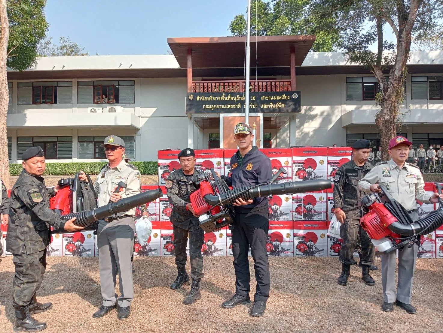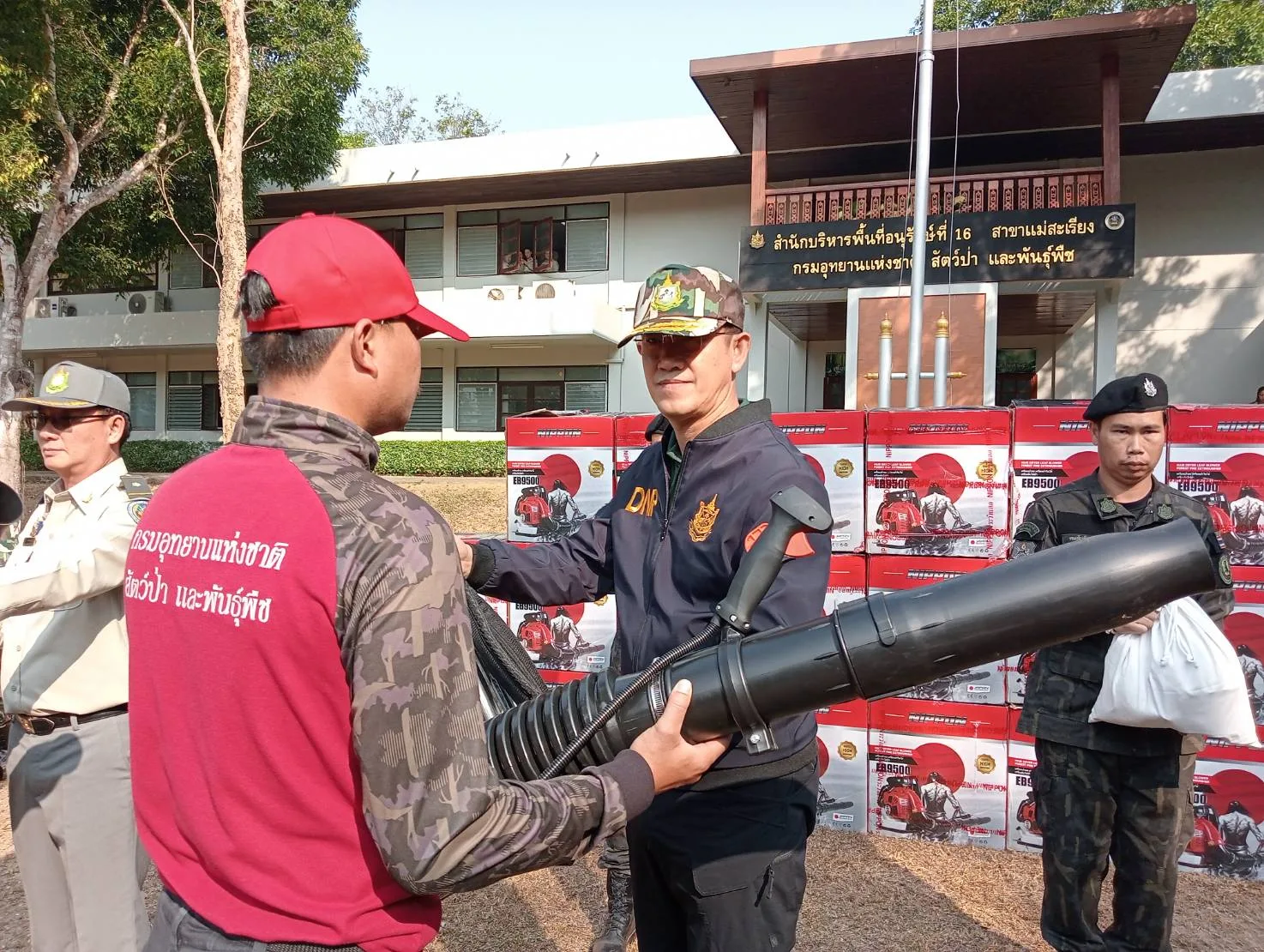 วันที่ 29 มกราคม 2568 เวลา 10.00 น. นายอรรถพล เจริญชันษา อธิบดีกรมอุทยานแห่งชาติ สัตว์ป่า และพันธุ์พืช เดินทางเข้าตรวจเยี่ยมและให้ขวัญกำลังใจแก่เจ้าหน้าที่ผู้ปฏิบัติงานในพื้นที่ โดยมีนายพรเทพ เจริญสืบสกุล ผู้อำนวยการสำนักบริหารพื้นที่อนุรักษ์ที่ 16 สาขาแม่สะเรียง ภาคีเครือข่าย ทหารพรานที่ 36 กองร้อยตำรวจตระเวนชายแดนที่ 337 และ ตัวแทนอาสาสมัครพิทักษ์อุทยานแห่งชาติ สัตว์ป่า และพันธุ์พืช (อส.อส.) กลุ่มป่าลุ่มน้ำสาละวิน พร้อมด้วยข้าราชการ เจ้าหน้าที่ในสังกัด และเครือข่ายราษฎรดับไฟป่า ร่วมให้การต้อนรับ ณ สำนักบริหารพื้นที่อนุรักษ์ที่ 16 สาขาแม่สะเรียง อ.แม่สะเรียง จ.แม่ฮ่องสอน พร้อมกันนี้ได้มอบเครื่องเป่าลม และเสบียงอาหารสำหรับดำรงชีพในการปฏิบัติงานไฟป่า ให้แก่เจ้าหน้าที่และราษฎรเครือข่ายดับไฟป่าในพื้นที่