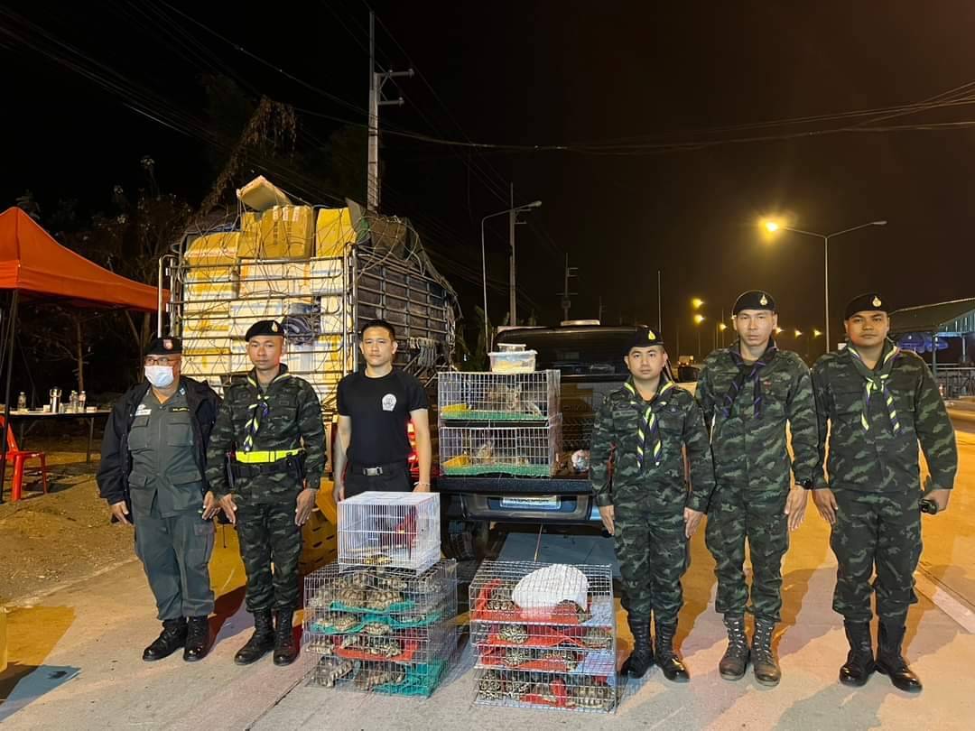 เมื่อวันที่ 11 กุมภาพันธ์ 2568 ทหารหน่วยเฉพาะกิจราชมนู (ฉก.ราชมนู)กองกำลังนเรศวร ร่วมกับ เจ้าหน้าที่ตำรวจ สภ.แม่สอด และฝ่ายปกครอง ปฏิบัติหน้าที่ตามภารกิจตั้งจุดตรวจฝ่ายความมั่นคง ประจำจุดตรวจร่วม บ้านห้วยหินฝน หมู่.6 ต.แม่ปะ อ.แม่สอด จ.ตาก ได้เรียกตรวจรถกระบะบรรทุกสินค้า ยี่ห้ออีซูซุ สีบรอนซ์เงิน จ.ตาก โดยมีนายคริส (สงวนนามสกุล) เป็นผู้ขับขี่ ผ่านมา เจ้าหน้าที่ทำการตรวจค้นพบลังบรรจุสิ่งของต้องสงสัย จึงได้เปิดเพื่อตรวจสอบ ได้พบสัตว์ป่าที่อยู่ภายใต้อนุสัญญาไซเตส
