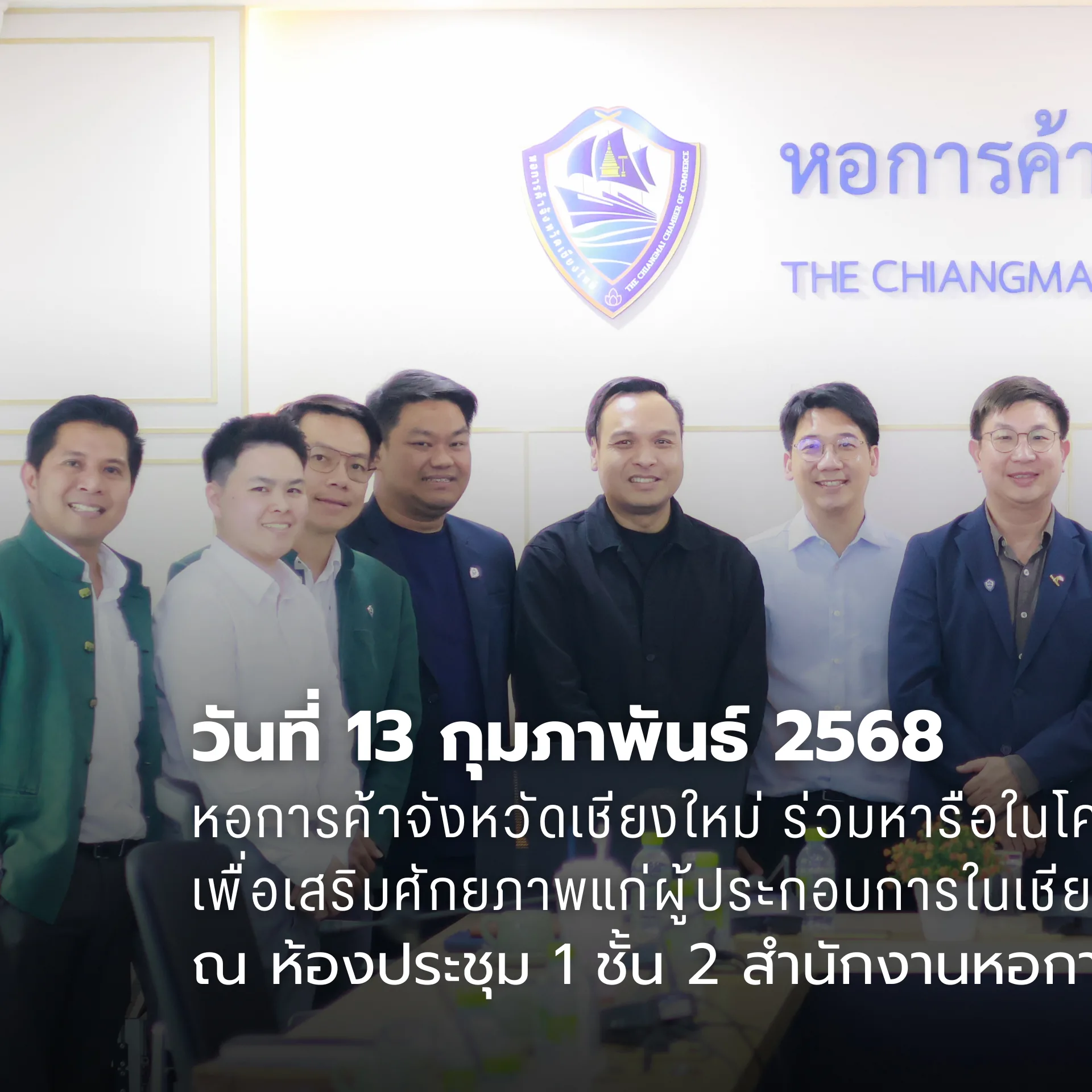 วันที่ 13 กุมภาพันธ์ 2568 ผู้แทนหอการค้าจังหวัดเชียงใหม่ นำโดย ดร.กอบกิจ อิสรชีววัฒน์ รองประธานกรรมการ พร้อมด้วย นายรัชกร ปิยะสัจจบูลย์ รองประธานกรรมการ นายปรกฤษฎิ์ สายหัสดี กรรมการเลขาธิการ นายสันติ เหล่าพาณิชย์กุล กรรมการนายทะเบียน ร่วมประชุมหารือในโครงการงานวิจัยแนวโน้มทางธุรกิจเพื่อเสริมศักยภาพแก่ผู้ประกอบการในเชียงใหม่ ร่วมกับ ทีมวิจัยจากคณะบริหารธุรกิจ มหาวิทยาลัยเชียงใหม่ และธนาคารแห่งประเทศไทย สำนักงานภาคเหนือ ณ ห้องประชุม 1 ชั้น 2 สำนักงานหอการค้าจังหวัดเชียงใหม่