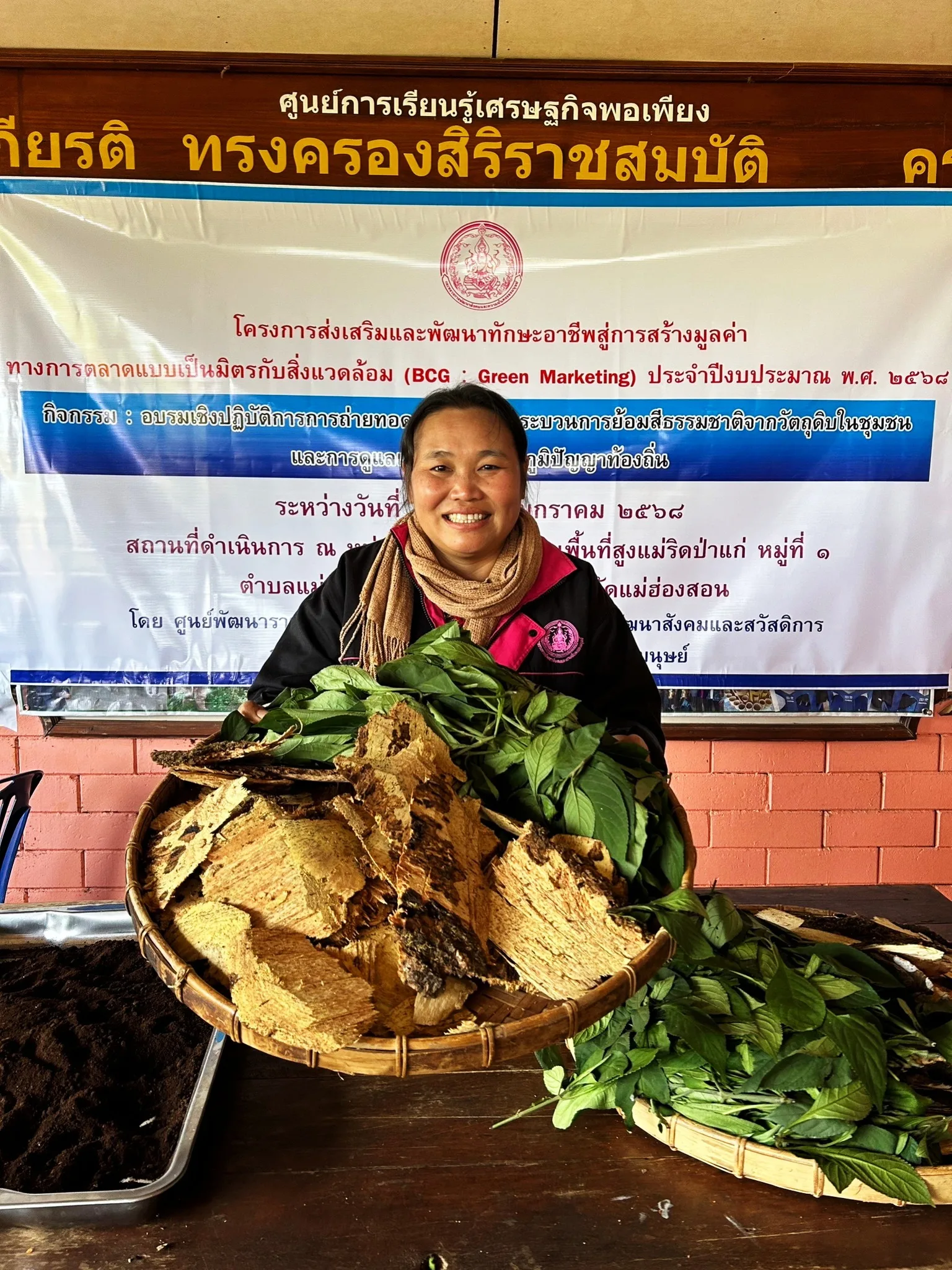 ซึ่งเป็น กิจกรรมอบรมเชิงปฏิบัติการการถ่ายทอดความรู้กระบวนการการย้อมสีธรรมชาติจากวัตถุดิบในชุมชนและการดูแลอนุรักษ์ภูมิปัญญาท้องถิ่น เพื่อตอบโจทย์การมีส่วนร่วมของชุมชนให้เกิดความเข้มแข็ง โดยอาศัยทุนทางสังคมด้านอัตลักษณ์และวิถีชีวิตชุมชนบนพื้นที่สูง เป็นกลไกการท่องเที่ยวภูมิวัฒนธรรมในการสร้างอาชีพและรายได้ซึ่งเป็นกลยุทธ์ส่งเสริมการท่องเที่ยวเชิงสร้างสรรค์ เกิดการฟื้นฟูอนุรักษ์และสืบสานวัฒนธรรมภูมิปัญญาในการย้อมสีธรรมชาติและการทอผ้าลายปวาเก่อญอที่มีความเป็นอัตลักษณ์ของชนเผ่าปวาเก่อญอ(กะเหรี่ยง) ให้คงไว้เพื่อสืบทอดให้ชนรุ่นหลังได้เรียนรู้และนำไปพัฒนาต่อยอดและยกระดับผ้าทอสีย้อมธรรมชาติเพื่อเป็นการเพิ่มมูลค่างานฝีมือหัตถกรรมที่มีคุณค่า เป็นทุนทางสังคมของชุมชนให้ดำรงอยู่ต่อไปและสามารถสร้างรายได้ให้กับชุมชนอย่างเป็นรูปธรรม