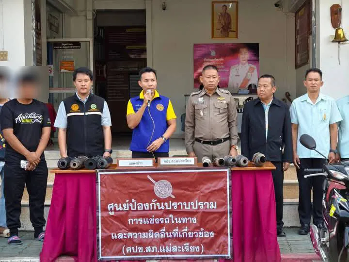 โดยเจ้าหน้าที่ตำรวจ สภ.แม่สะเรียง ได้ทำการตรวจยึด จยย.ดัดแปลงสภาพรถแต่งท่อดังและยึดท่อไอเสียที่ไม่ได้มาตรฐาน จำนวน 52 ราย พร้อมเชิญผู้ปกครองเยาวชนมารับทราบการกระทำของเด็กและเยาชนพร้อมชี้แจงข้อกฏหมายที่เกี่ยวข้องให้ได้รับทราบและทำการว่ากล่าวตักเตือน สำหรับการจับกุมนั้นได้แจ้งให้ผู้กระทำความผิดดำเนินการแก้ไขท่อไอเสียให้อยู่ในสภาพเดิม ส่วนท่อไอเสียที่ผิดกฎหมาย ทางเจ้าหน้าที่ได้ทำการบดทำลาย 52 รายการ พร้อมเปรียบเทียบปรับตามกฎหมาย พร้อมกันนี้ตำรวจได้ปรับพฤติกรรมวัยรุ่นให้อยู่ในกรอบของกฎหมาย ไม่สร้างความเดือดร้อนรำคาญให้ประชาชน ซึ่งวัยรุ่นส่วนใหญ่ให้ข้อมูลว่าว่าได้ทำการเปลี่ยนเองโดยได้สั่งซื้อท่อมาทางออนไลน์ ในราคา 1,000-2,000 บาท