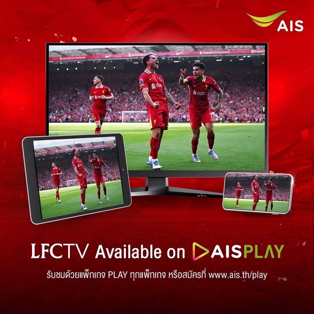 AIS PLAY ตอกย้ำความเป็นผู้นำด้านคอนเทนต์กีฬาระดับโลก ร่วมเฉลิมฉลองชัยชนะครั้งยิ่งใหญ่ของสโมสรลิเวอร์พูลในการคว้าแชมป์พรีเมียร์ลีก อังกฤษ ฤดูกาล 2024/25 โดยนำ LFCTV (Liverpool Football Club Television) ถ่ายทอดคอนเทนต์หลักของสโมสรลิเวอร์พูล ส่งมอบประสบการณ์รับชมคอนเทนต์กีฬาคุณภาพระดับโลกให้กับลูกค้าแฟนหงส์แดงไทย รับชมได้แล้ววันนี้ ผ่านแอปพลิเคชัน AIS PLAY, กล่อง AIS PLAYBOX, 3BB GIGA TV, Smart TV, Apple TV และเว็บไซต์ https://aisplay.ais.co.th/portal