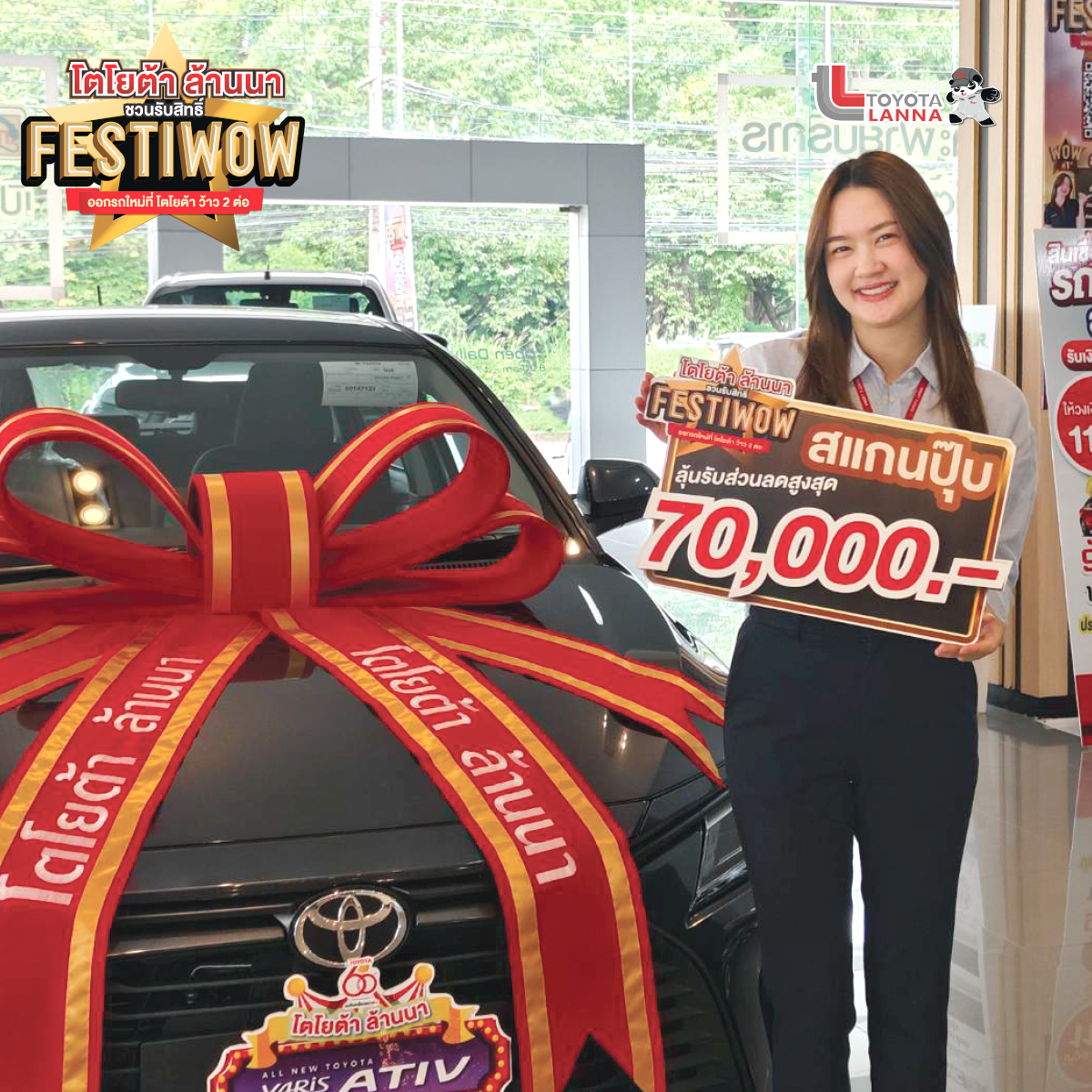 ลูกค้าเพียงแวะมา ที่บูธ โตโยต้า ล้านนา ทำการสแกนรับสิทธิ์ พร้อมทราบผลส่วนลดพิเศษที่ได้รับทันที “ลุ้นรับส่วนลดสูงสุด 70,000 บาท” ก่อนทำการตัดสินใจจองรถ นอกจากนี้ โตโยต้า ล้านนา เข้าใจถึงความต้องการที่หลากหลายของลูกค้า จึงนำเสนอแคมเปญหลายทางเลือก “ออกรถใช้เงินน้อย” หรือ “เลือกผ่อนชำระแบบสบายๆ” ในอัตราที่เหมาะสมกับทุกไลฟ์สไตล์ ทำให้การมีรถเป็นเรื่องง่าย สำหรับคุณ