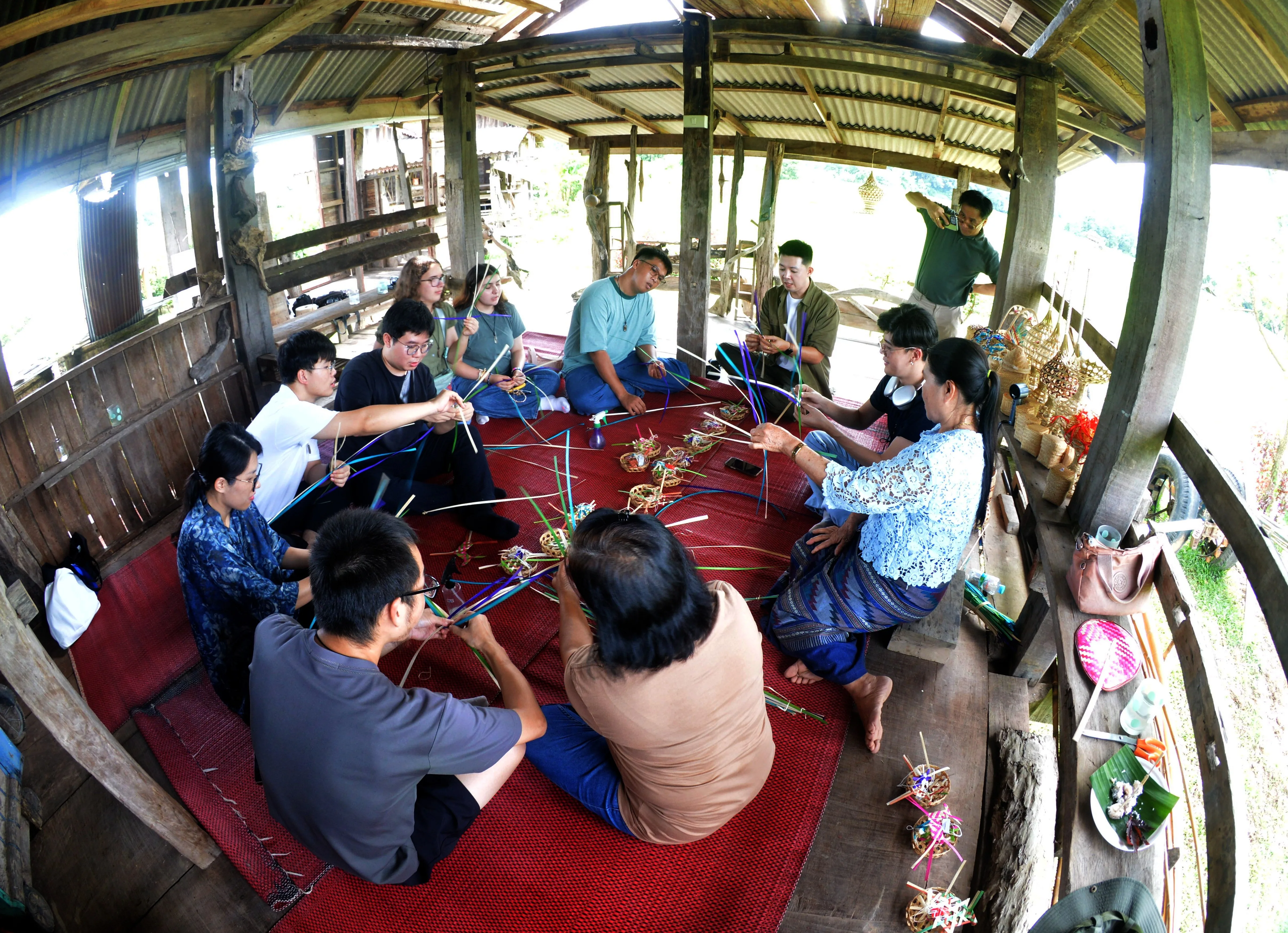 สถานที่สุดท้ายของทริปนี้ไปกันที่ “ต้งชมจันทร์” ของ พ่อย่า และแม่จันตา จ๋อยพรม สัมผัสวิถีชีวิต เรียนรู้ภูมิปัญญา และวัฒนธรรมพื้นบ้าน เติมเต็มประสบการณ์การท่องเที่ยวใหม่ในวิถีพอเพียง ร่วมเรียนรู้การจักสานของ “กลุ่มวิสาหกิจชุมชนจักสานบ้านต้าม” จากแม่ครูทั้ง 2 ท่านในการจักสานในรูปแบบม้า และ ต๋าแหลว หรือ ตาเหลว เป็นเครื่องจักสานชนิดหนึ่งทำจากตอกหนึ่งก้านที่หักไปมาเป็นแฉก เครื่องหมายพิธีกรรมแห่งล้านนา จากนั้นร่วมทำกิจกรรมเก็บผักพื้นบ้านตามฤดูกาล ยกยอ ตกปลา และทำอาหารเย็นร่วมกันในแบบอยากกินก็ทำในตัวเราเอง เลือกซื้อผลิตภัณฑ์ชุมชน ได้แก่ มะขามแช่อิ่ม ข้าวไรซ์เบอรี่ ปลูกจากที่นาของบ้านนี่เอง ณ บ้านต้งชมจันทร์ ตำบลบ่อสวก อำเภอเมืองน่าน จังหวัดน่าน