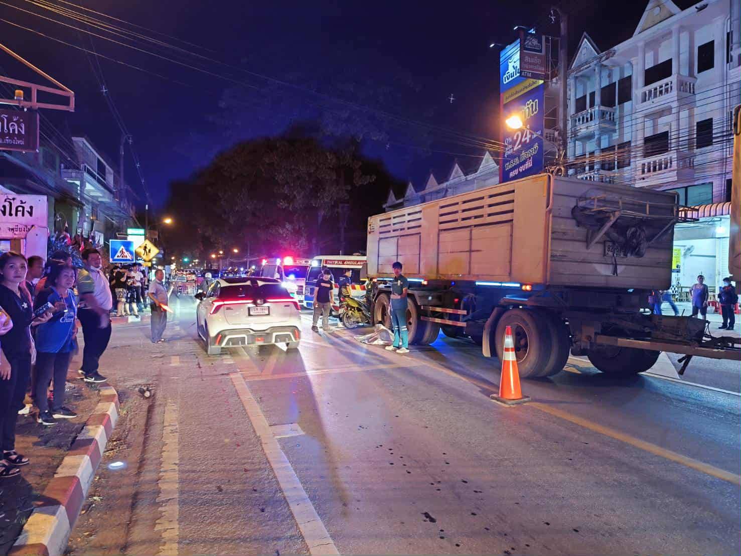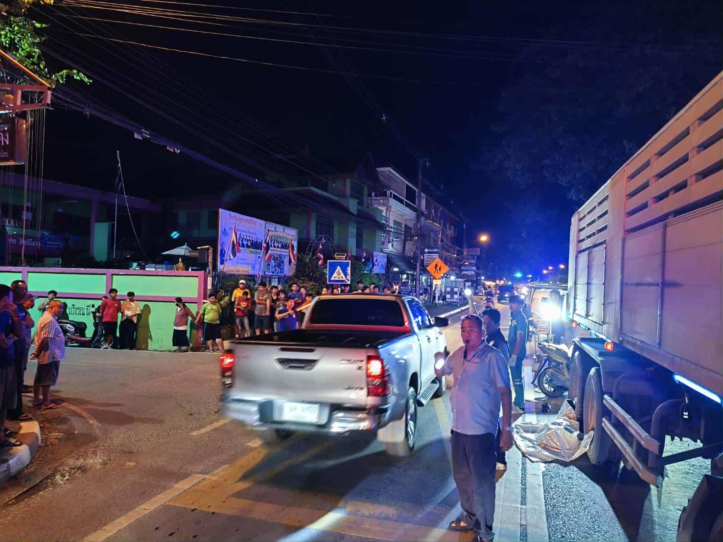 พฤติการณ์ พนักงานสอบสวนตรวจที่เกิดเหตุ สอบถามผู้เห็นเหตุการณ์ให้การว่า เห็นรถจักรยานยนต์กำลังจะเลี้ยวเข้าปากทางบ้านหนองโค้ง ต่อมามีรถบรรทุกมาชน ทำให้รถจักรยานยนต์ล้มลง ได้รับความเสียหาย ผู้ขับขี่จักรยานยนต์ติดอยู่ที่ล้อหลังขวารถบรรทุก เสียชีวิตในที่เกิดเหตุ ลักษณะการขับขี่ คู่กรณีมาในช่องทางเดินรถเดียวกัน (ผู้สื่อข่าวรายงงานว่าล้อบรรทุกทับหัวและดับคาที่ ทางเจ้าหน้าที่จะได้สอบสวนหาสาเหตุกันต่อไป