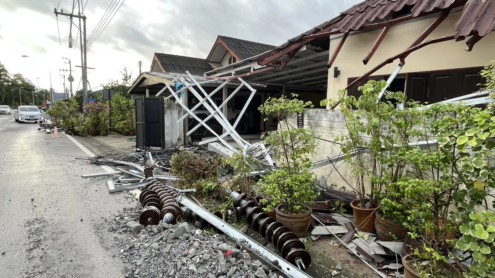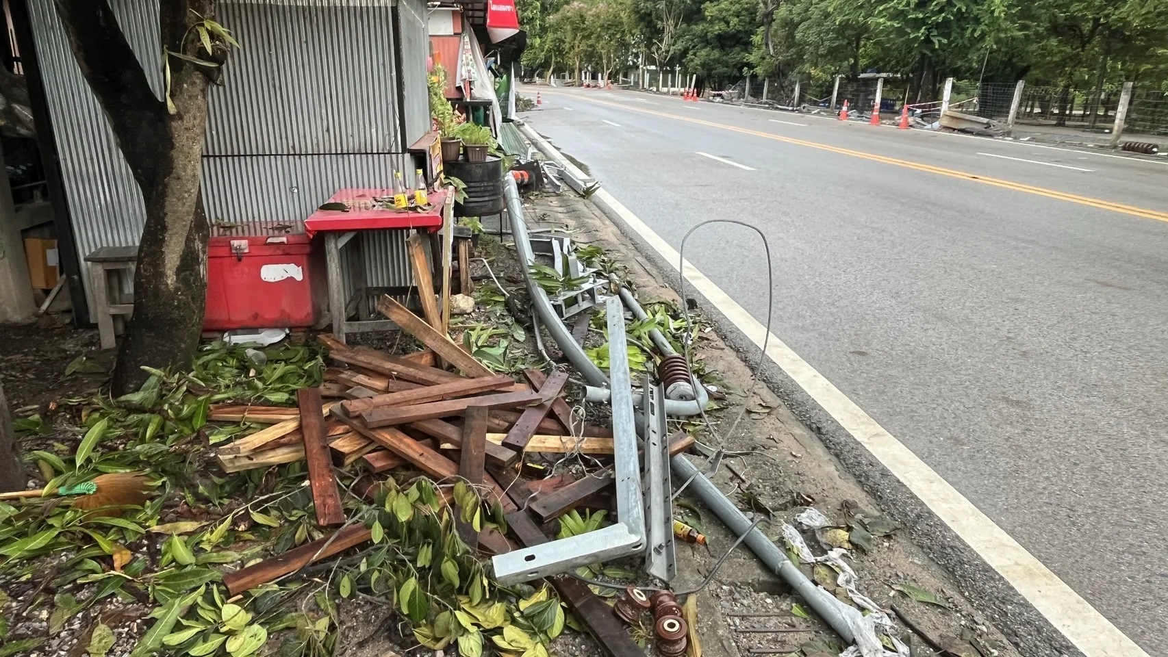 เจ้าของบ้านเหยื่อเสาไฟฟ้าล้มทับบ้าน รอเยียวยาค่าซ่อมบ้านหลังละกว่า 1 แสนบาท