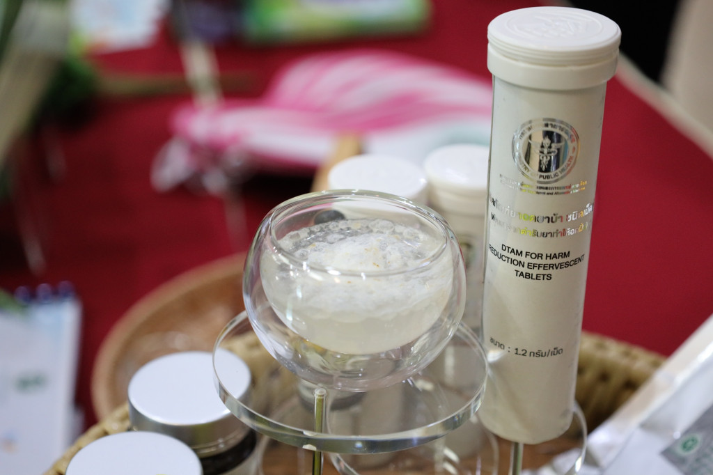 คณะผู้แทนได้เยี่ยมชมนิทรรศการนวัตกรรมยาสมุนไพรในการบำบัดผู้ติดยาเสพติดและร่วมรับฟังถึงกระบวนการรักษา ฟื้นฟูผู้ติดยาเสพติดด้วยการแพทย์แผนไทยและการแพทย์ทางเลือก เช่น การใช้ตำรับยาสมุนไพรในแต่ละช่วงระยะของการรักษาและการฟื้นฟูสมรรถภาพ การทำสมาธิบำบัด (SKT) การกดจุดสะท้อนฝ่าเท้า และการอบสมุนไพร