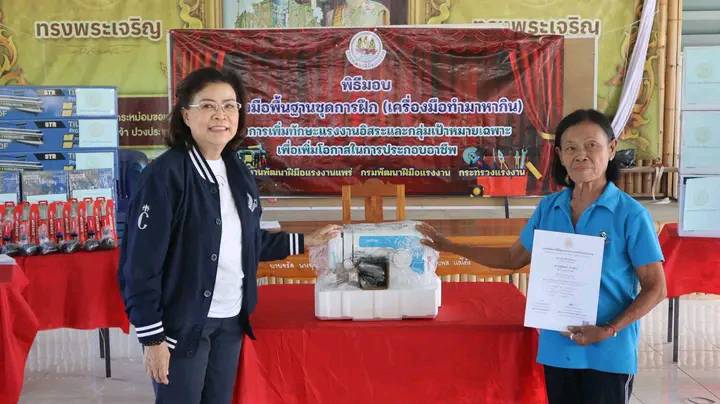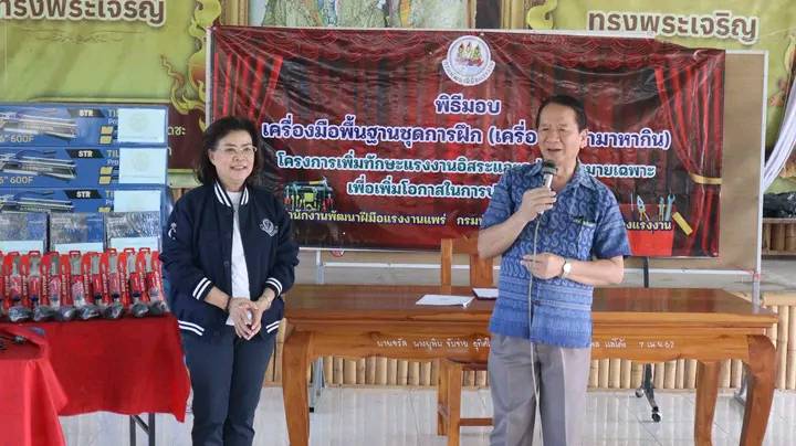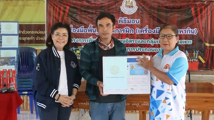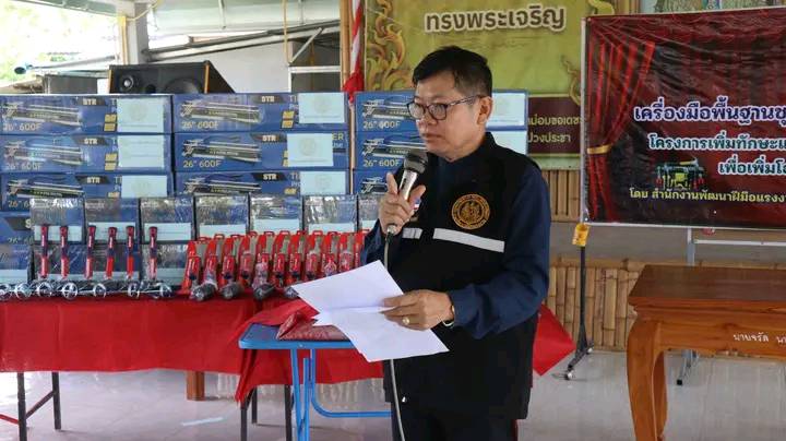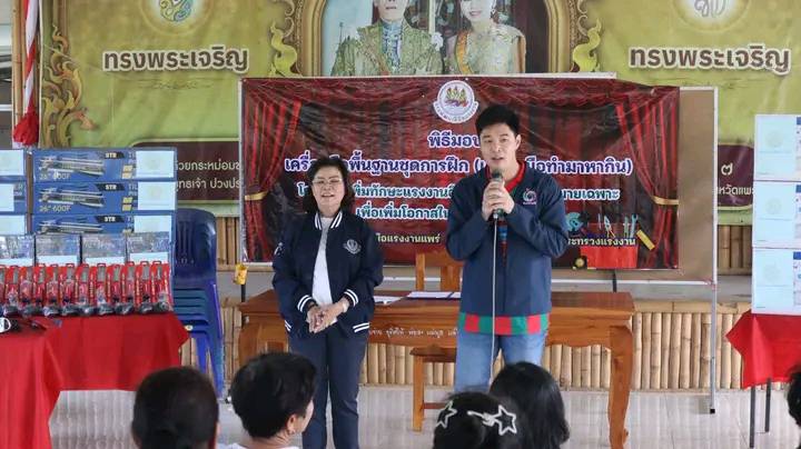 นายก ทต.ร้องกวาง ร่วมพิธีมอบเครื่องมือพื้นฐานชุดการฝึก เครื่องมือทำมาหากิน โครงการเพิ่มทักษะแรงงานอิสระและกลุ่มเป้าหมายเฉพาะตำบลร้องเข็ม