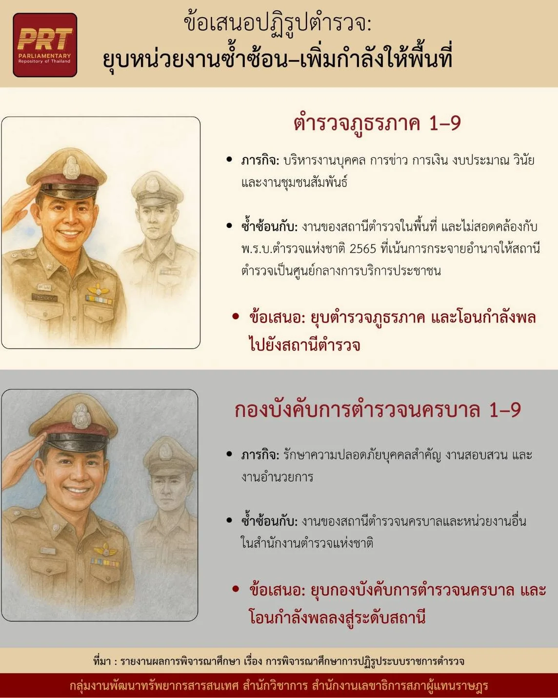 สภาฯ หนุนข้อเสนอ กมธ.มั่นคงฯ ปฏิรูปตำรวจ — ชง “ยุบตำรวจภูธรภาค–บช.น. 1–9” ลดซ้ำซ้อน โอนกำลังลงพื้นที่บริการประชาชน