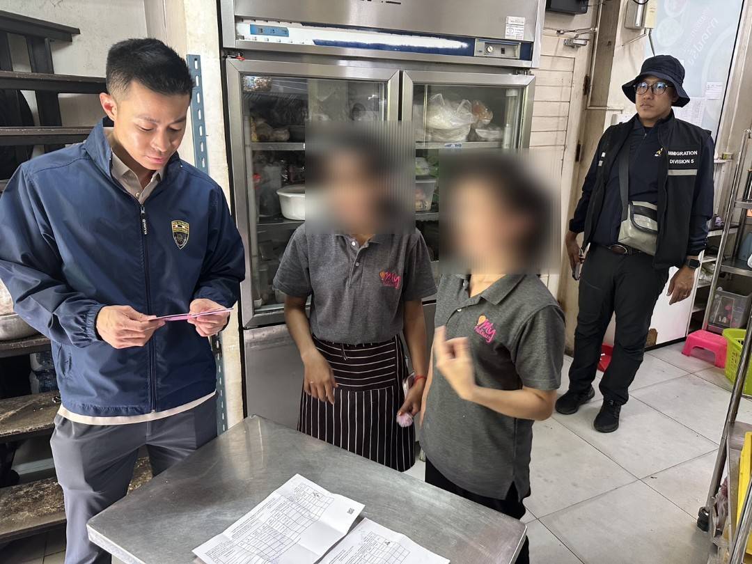 ผู้ต้องหาให้การรับสารภาพว่า ตนได้ทำงานอยู่ที่ร้านแห่งนี้ โดยทำหน้าที่พนักงานครัว มีหน้าที่จัดเตรียมอาหาร เช่น ล้างผัก หั่นผัก จัดผักลงในภาชนะให้ลูกค้า ได้รับค่าจ้างเป็นรายเดือนๆ ละ 9,000 บาท โดยไม่ได้ดำเนินการขอใบอนุญาตทำงานถูกต้องตามกฎหมายแต่อย่างใด เจ้าหน้าที่ชุดจับกุมจึงได้ควบคุมตัวผู้ต้องหาส่งพนักงานสอบสวน สภ.หางดง เพื่อดำเนินคดีตามกฎหมายต่อไป
