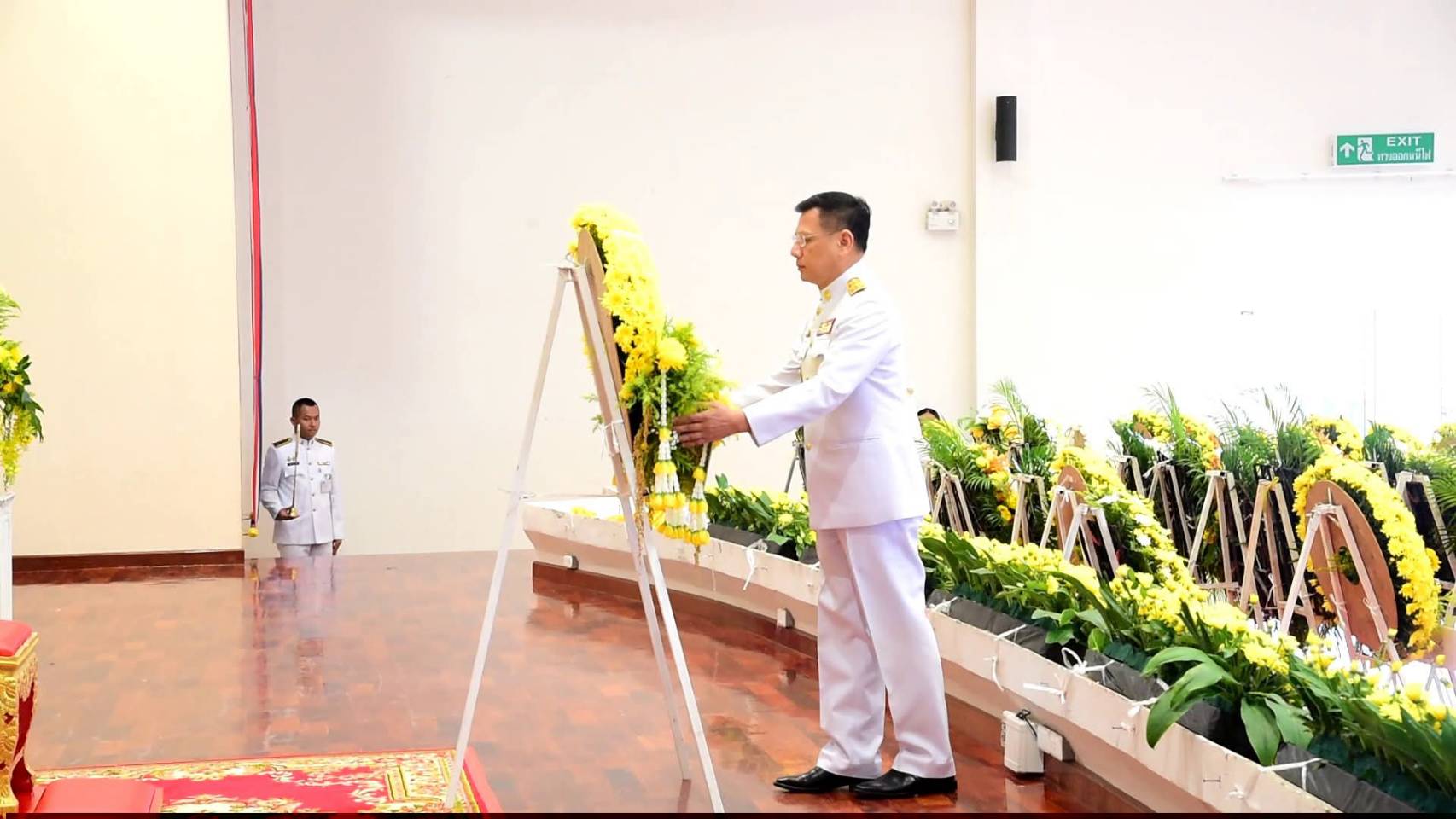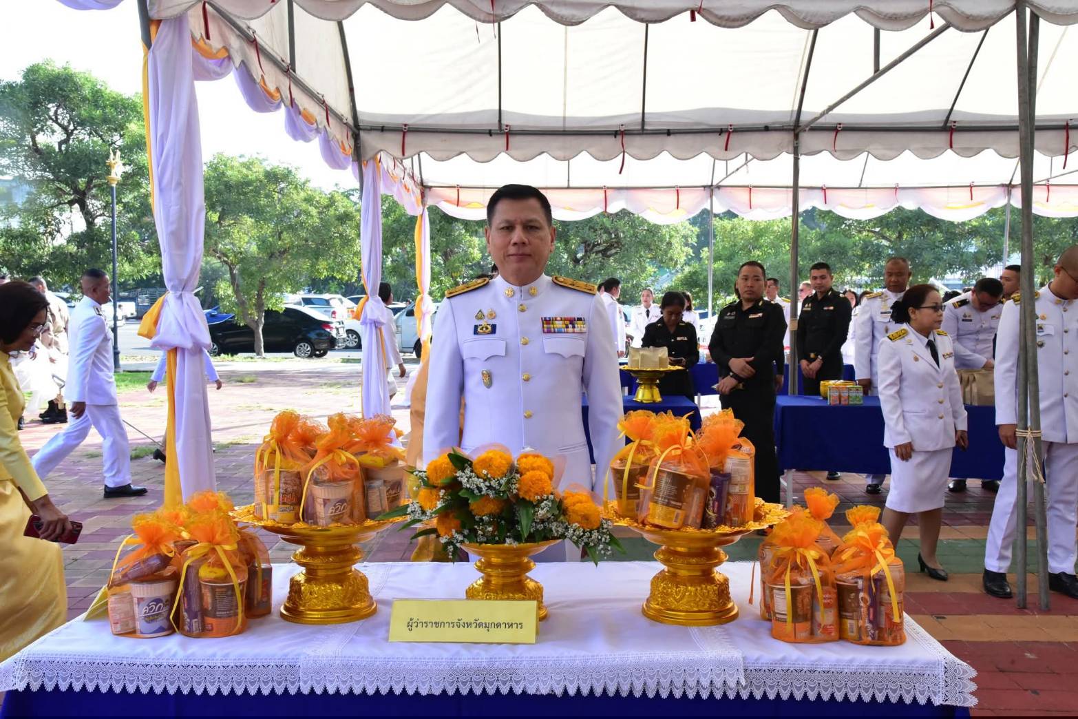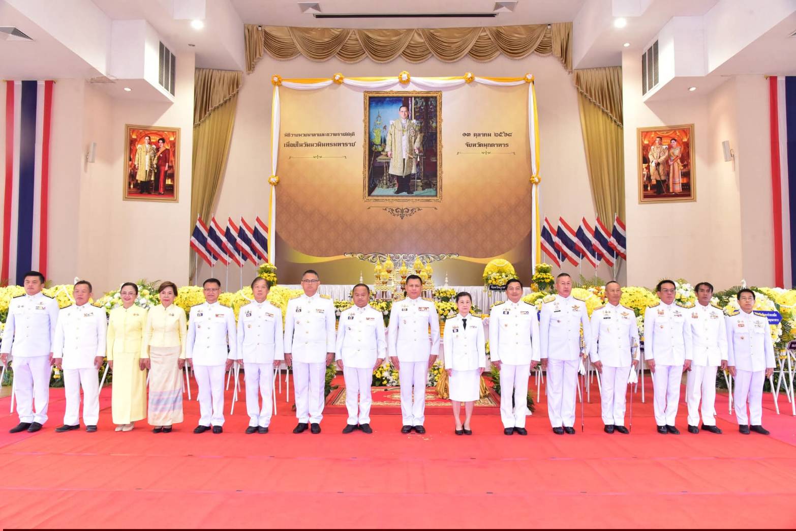 ต่อมาเวลา 09.30 น. นายวรญาณ บุญณราช ผู้ว่าราชการจังหวัดมุกดาหาร ได้นำคณะรองผู้ว่าราชการจังหวัด ปลัดจังหวัด หัวหน้าส่วนราชการ ข้าราชการ ศาล อัยการ ทหาร ตำรวจ เหล่ากาชาดจังหวัด องค์กรปกครองส่วนท้องถิ่น และพสกนิกรทุกหมู่เหล่า ร่วมพิธีวางพวงมาลาเบื้องหน้าพระบรมฉายาลักษณ์ พร้อมกล่าวน้อมรำลึกในพระมหากรุณาธิคุณของพระบาทสมเด็จพระบรมชนกาธิเบศร มหาภูมิพลอดุลยเดชมหาราช บรมนาถบพิตร โดยบรรยากาศของพิธีเป็นไปด้วยความสงบเรียบร้อยและเปี่ยมด้วยความสำนึกในพระมหากรุณาธิคุณอย่างหาที่สุดมิได้.