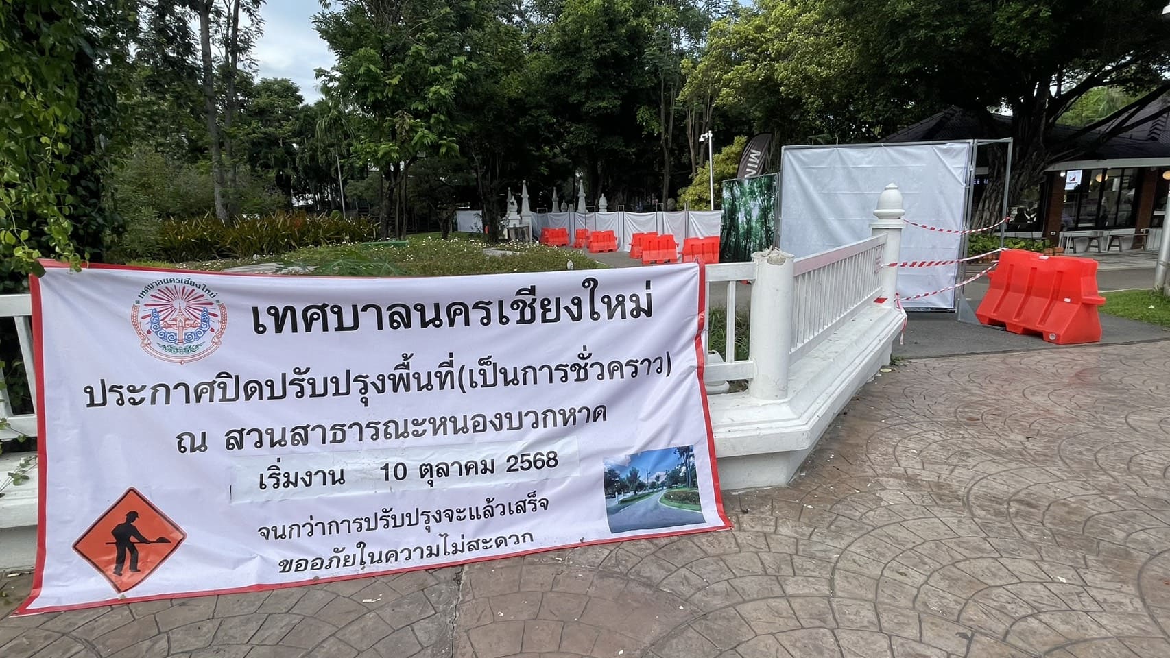 เจ้าหน้าที่เทศบาลนครเชียงใหม่ ได้มีการปิดกั้นพื้นที่บางส่วนของสวนสาธารณะหนองบวกหาด พร้อมทั้งติดป้ายแจ้งเตือนประชาชนเพื่อเตรียมพร้อมในการดำเนินงานแผนโครงการปรับปรุงลู่วิ่งพื้นยางสังเคราะห์ภายในบริเวณพื้นที่สวนสาธารณะดังกล่าว ที่มีระยะเวลาการดำเนินการประมาณ 180 วัน โดยมีการประกาศเริ่มดำเนินการเมื่อวันที่ 10 ต.ค. 68 ที่ผ่านมา จนถึงวันที่ 29 ธ.ค. 68 ที่จะทำการปรับปรุงลู่วิ่งโดยรอบ ให้พื้นลู่วิ่งมีความยืดหยุ่นเหมาะสำหรับการวิ่งและการเดิน เพื่อลดแรงกระแทกจากการออกกำลังกาย โดยมีความยาวไม่น้อยกว่า 600 เมตร พื้นที่โดยรอบไม่น้อยกว่า 2,435 ตารางเมตร พร้อมระบบระบายน้ำรูปตัววีด้านข้าง