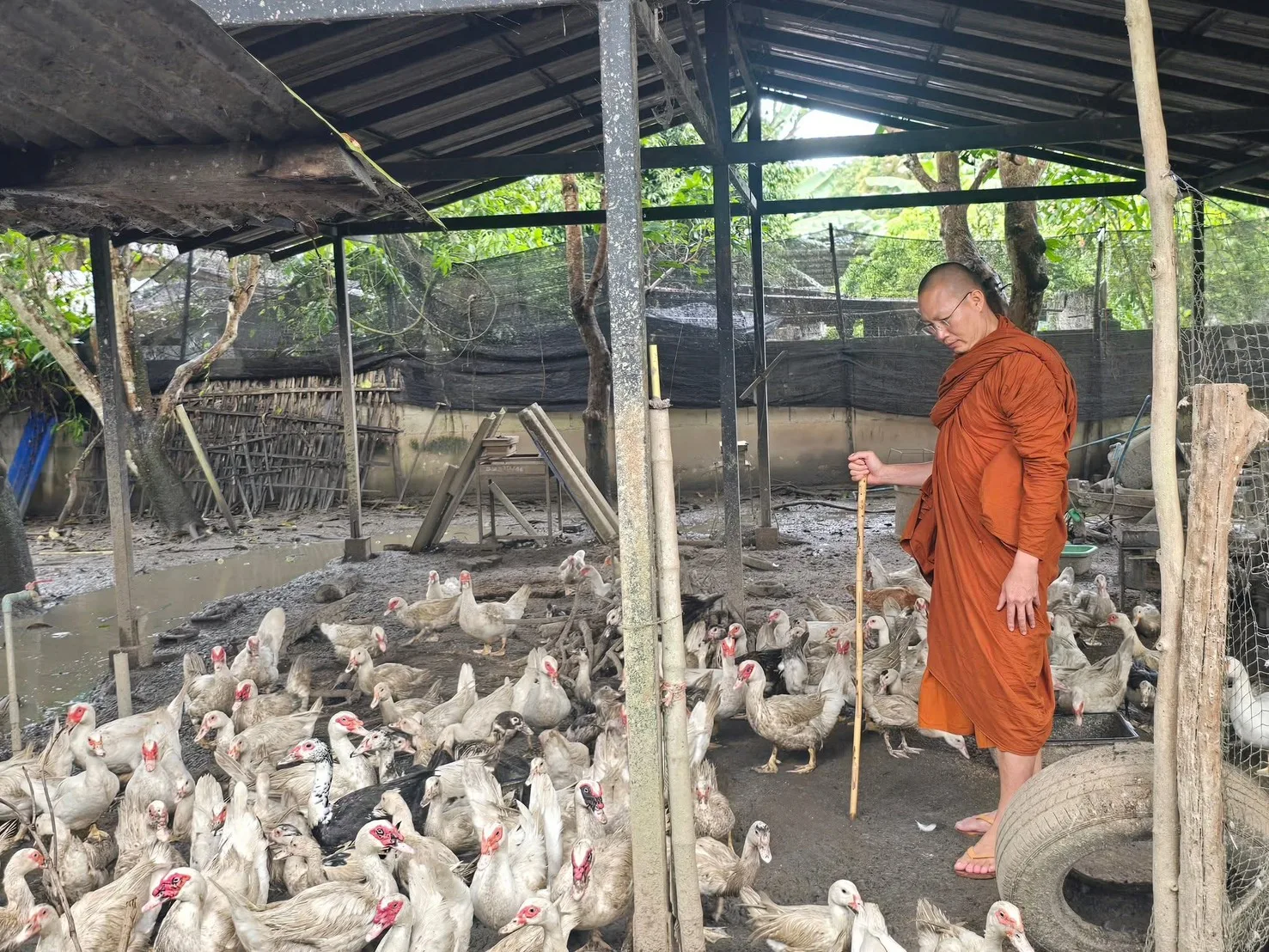 เมื่อวันที่ 16 ตุลาคม 2568 พระครูอ๊อด วัดเจดีย์หลวง จังหวัดเชียงใหม่ ได้โพสต์เฟซบุ๊กเผยเรื่องราวน่าประทับใจ หลังมีโยมส่งเรื่องมาขอความเมตตาให้ช่วยเหลือฝูงเป็ดเนื้อกว่า 100 ตัว ซึ่งกำลังจะถูกขายยกฝูง เนื่องจากเจ้าของเตรียมเลิกเลี้ยง