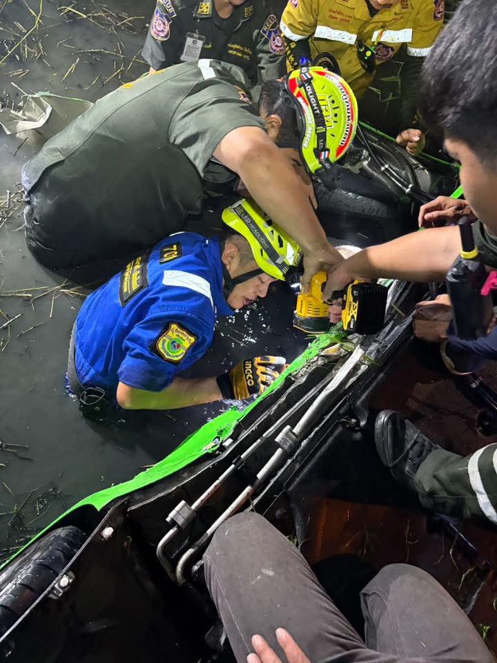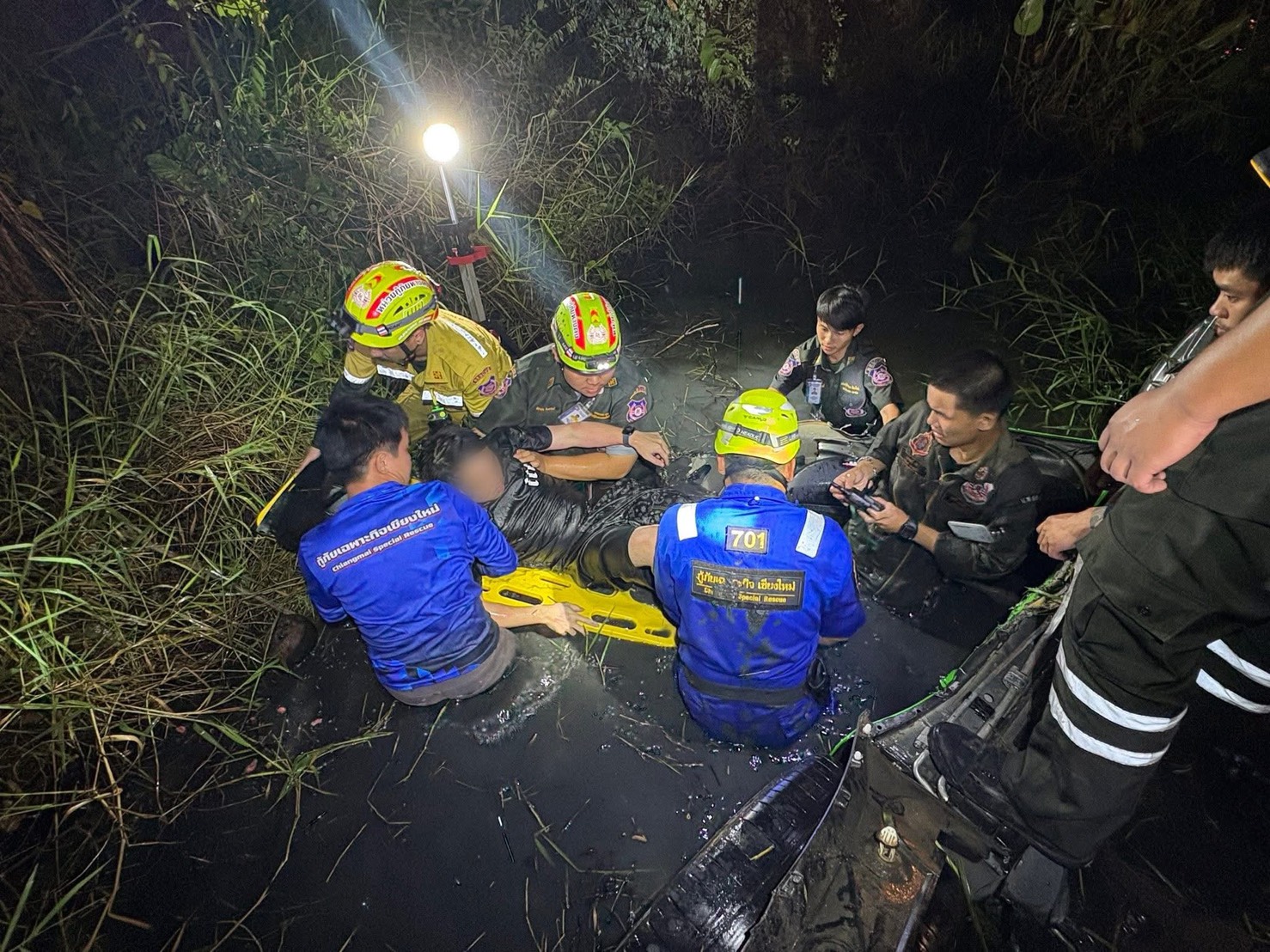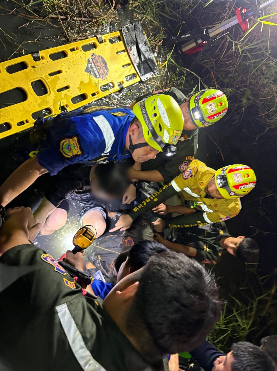 หลังใช้เวลาหลายนาที ทีมกู้ภัยสามารถนำร่างผู้บาดเจ็บเป็นชาย 1 รายออกมาได้อย่างปลอดภัย ก่อนส่งทีมการแพทย์ฉุกเฉินนำส่งโรงพยาบาลอย่างเร่งด่วน