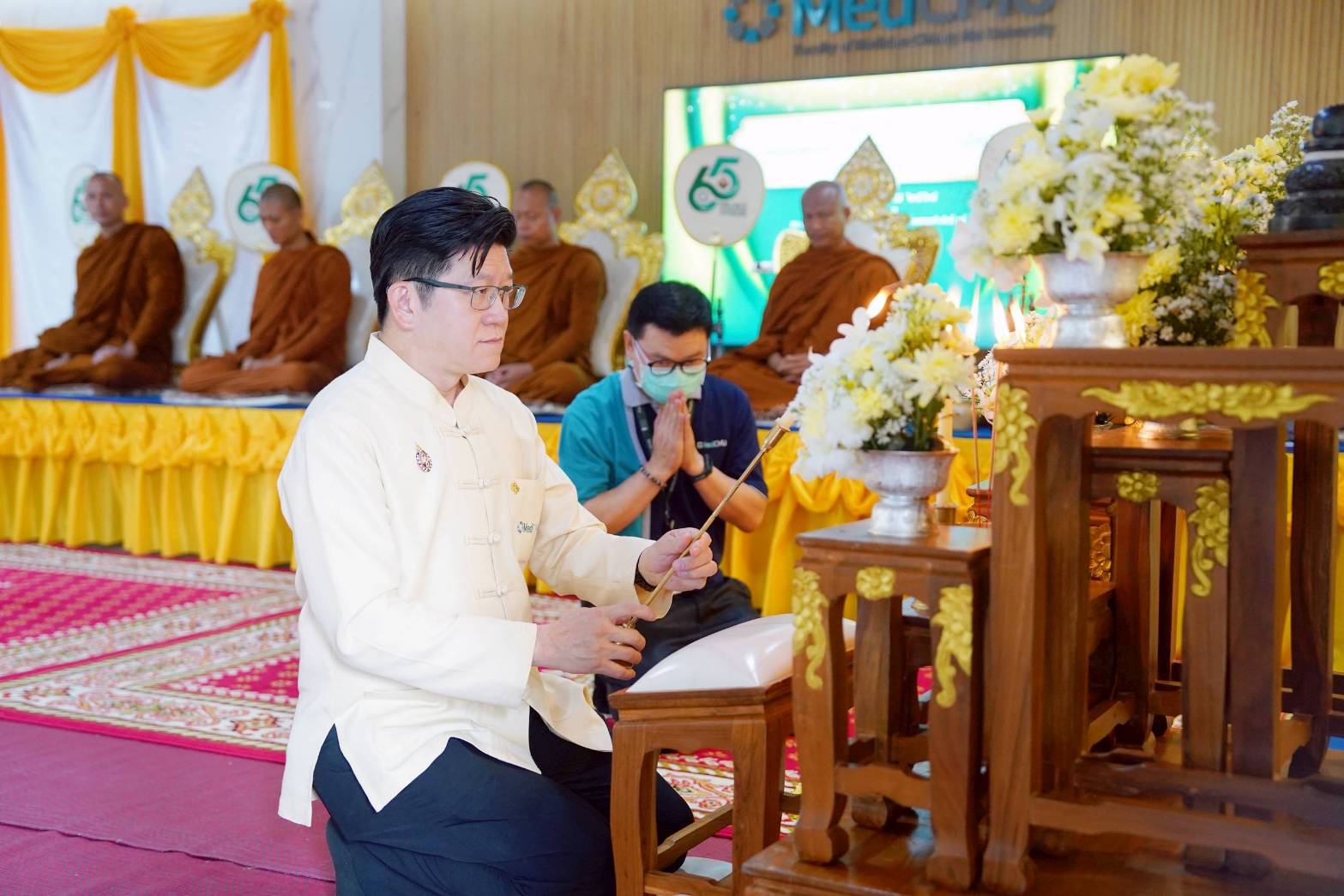 รศ.นพ.นเรนทร์ โชติรสนิรมิต คณบดีคณะแพทยศาสตร์ มช. เป็นประธานฝ่ายฆราวาส จุดธูปเทียนบูชาพระรัตนตรัย ในพิธีทำบุญคณะแพทยศาสตร์ มหาวิทยาลัยเชียงใหม่ ประจำปี พ.ศ.2568 โดยมี พระราชวชิรคุณ (หลวงพ่อทองแดง วรปัญโญ) ที่ปรึกษาเจ้าคณะจังหวัดเชียงใหม่-ลำพูน-แม่ฮ่องสอน (ธ) เจ้าอาวาสวัดดอยพระเจ้าตนหลวง เป็นประธานสงฆ์