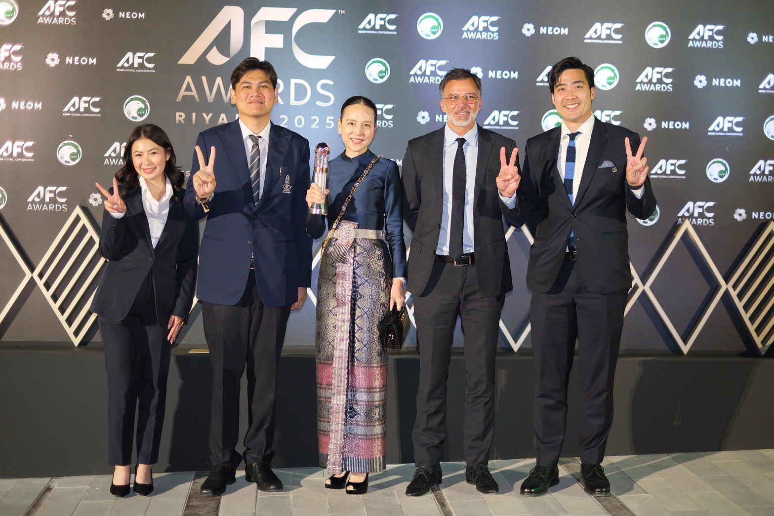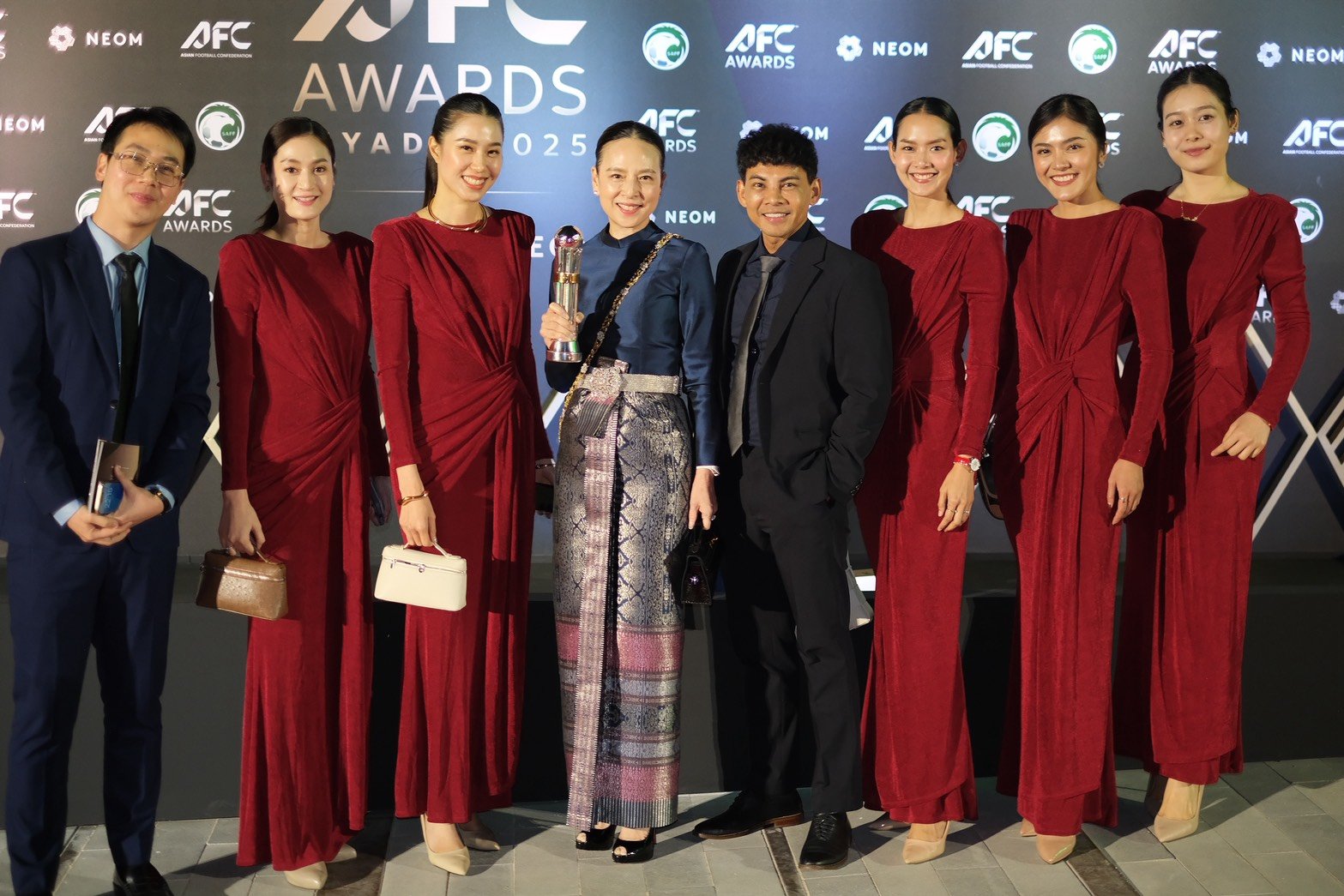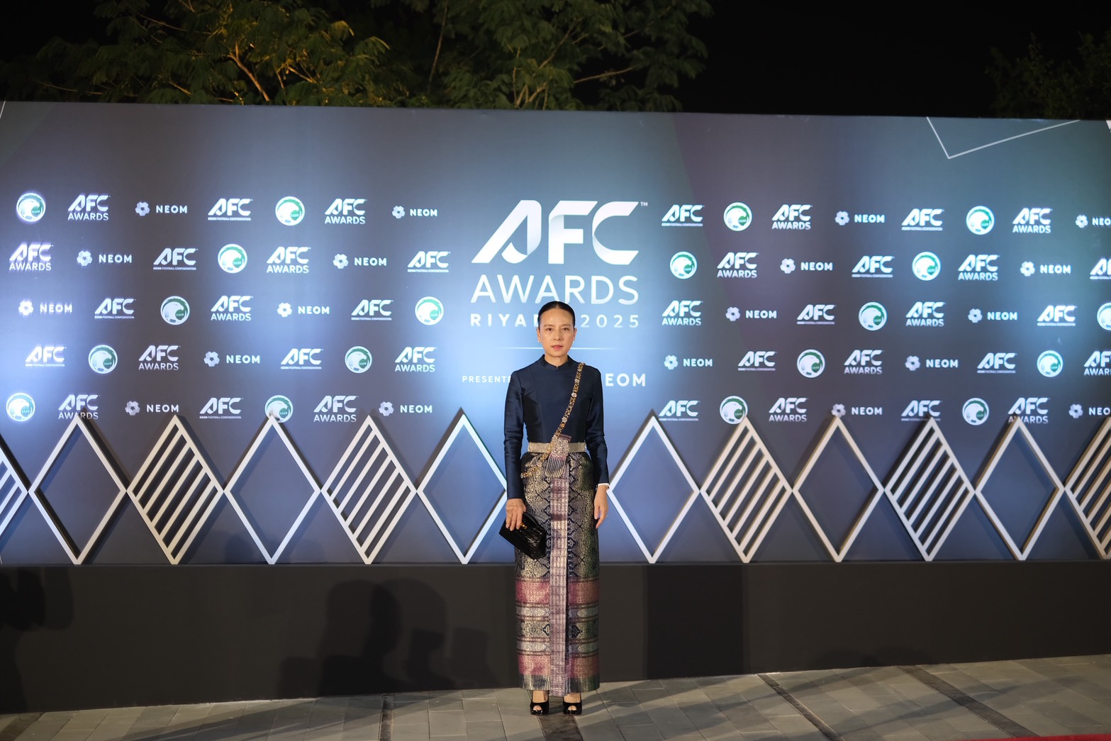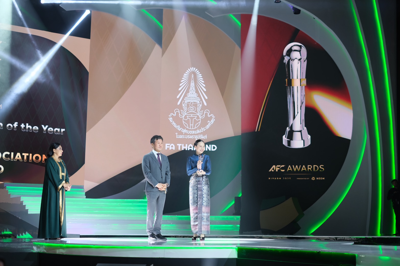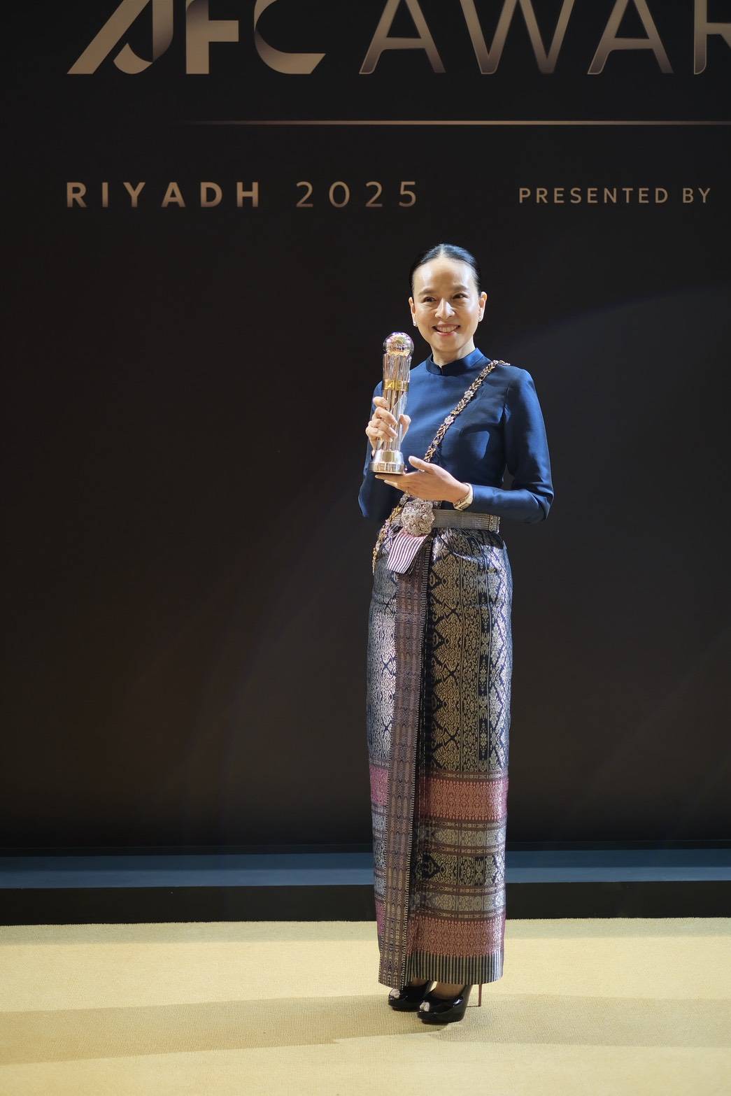 สมาพันธ์ฟุตบอลแห่งเอเชีย โพสต์ภาพ มาดามแป้ง ขึ้นรับรางวัลด้วยชุดผ้าไหมไทย พร้อมระบุว่า “ประกายแห่งความสำเร็จเจิดจรัสบนเวทีเอเชีย สมาคมกีฬาฟุตบอลแห่งประเทศไทย คว้ารางวัล AFC Member Association of the Year ประเภท Diamond อันทรงเกียรติ!”