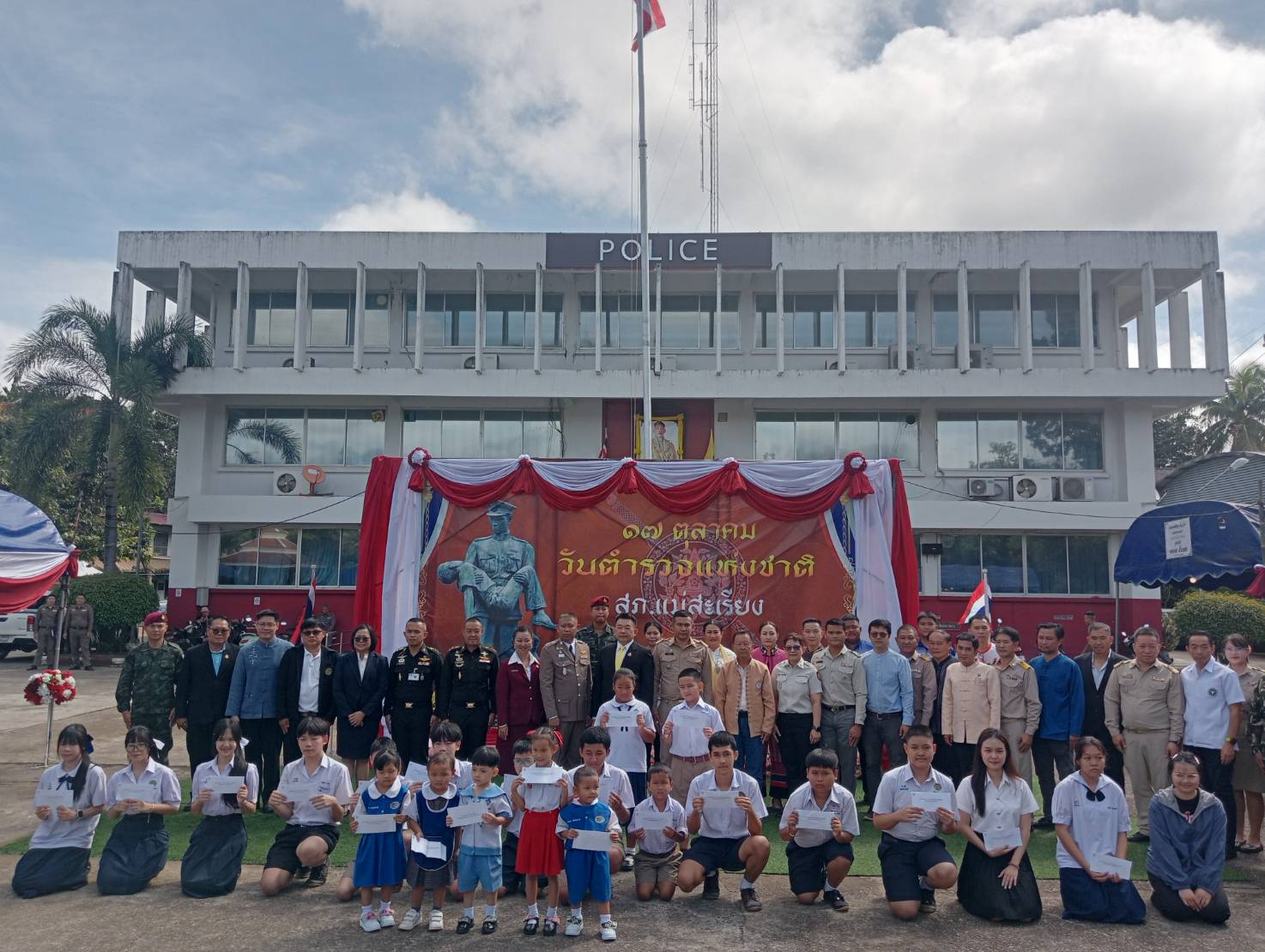 วันที่ 17 ตุลาคม 2568 พ.ต.อ.รัฐวิชญ์ วศินพงศ์ธนัช ผู้กำกับการสถานีตำรวจภูธรแม่สะเรียง นำข้าราชการตำรวจ ครอบครัว บุตรธิดา ร่วมจัดกิจกรรม เนื่องในวันตำรวจแห่งชาติประจำปี พ.ศ.2568 โดยได้รับเกียรติจาก ผู้พิพากษาศาลจังหวัดแม่สะเรียง ปกครองอำเภอแม่สะเรียง อัยการจังหวัดแม่สะเรียง หน่วยเฉพาะกิจกรมทหารพรานที่ 36 หน่วยพัฒนาการเคลื่อนที่ 36 หัวหน้าส่วนราชการในพื้นที่ร่วมกิจกรรม การทำบุญเพื่อความเป็นสิริมงคลแก่ข้าราชการตำรวจ ณ ลานหน้าสถานีตำรวจภูธรแม่สะเรียง อ.แม่สะเรียง จ.แม่ฮ่องสอน