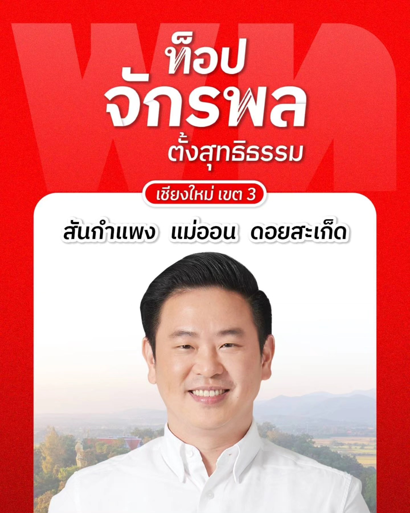 ผมขอเสนอตัว เป็นว่าที่ผู้สมัคร ส.ส. เพื่อทำงานในพื้นที่ทั้ง 3 อำเภอ (เขต 3) ของจังหวัดเชียงใหม่ ฝากตัวฝากใจไว้กับชาว สันกำแพง แม่ออน ดอยสะเก็ด โตยน่ะคับ