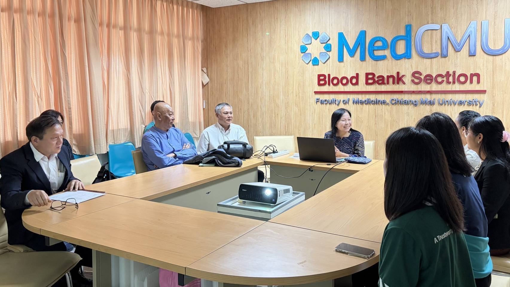ผศ.นพ.กฤษณ์ ขวัญเงิน รองคณบดีด้านเทคโนโลยีสารสนเทศและบริหารจัดการข้อมูล คณะแพทยศาสตร์ มช. และ ทนพญ.ไพรจิตร ตานัน หัวหน้างานธนาคารเลือด โรงพยาบาลมหาราชนครเชียงใหม่ ให้การต้อนรับ คณะอาคันตุกะจาก Ministry of Health, Laos PDR และ University of Health Sciences, Laos นำโดย Assoc. Prof. Dr. Alongkone Phengsavanh, Dean of Faculty of Medicine จาก University of Health Sciences, Dr. Thongphout Xaysana, Deputy Director General, Department of Health Personnel จาก Ministry of Health