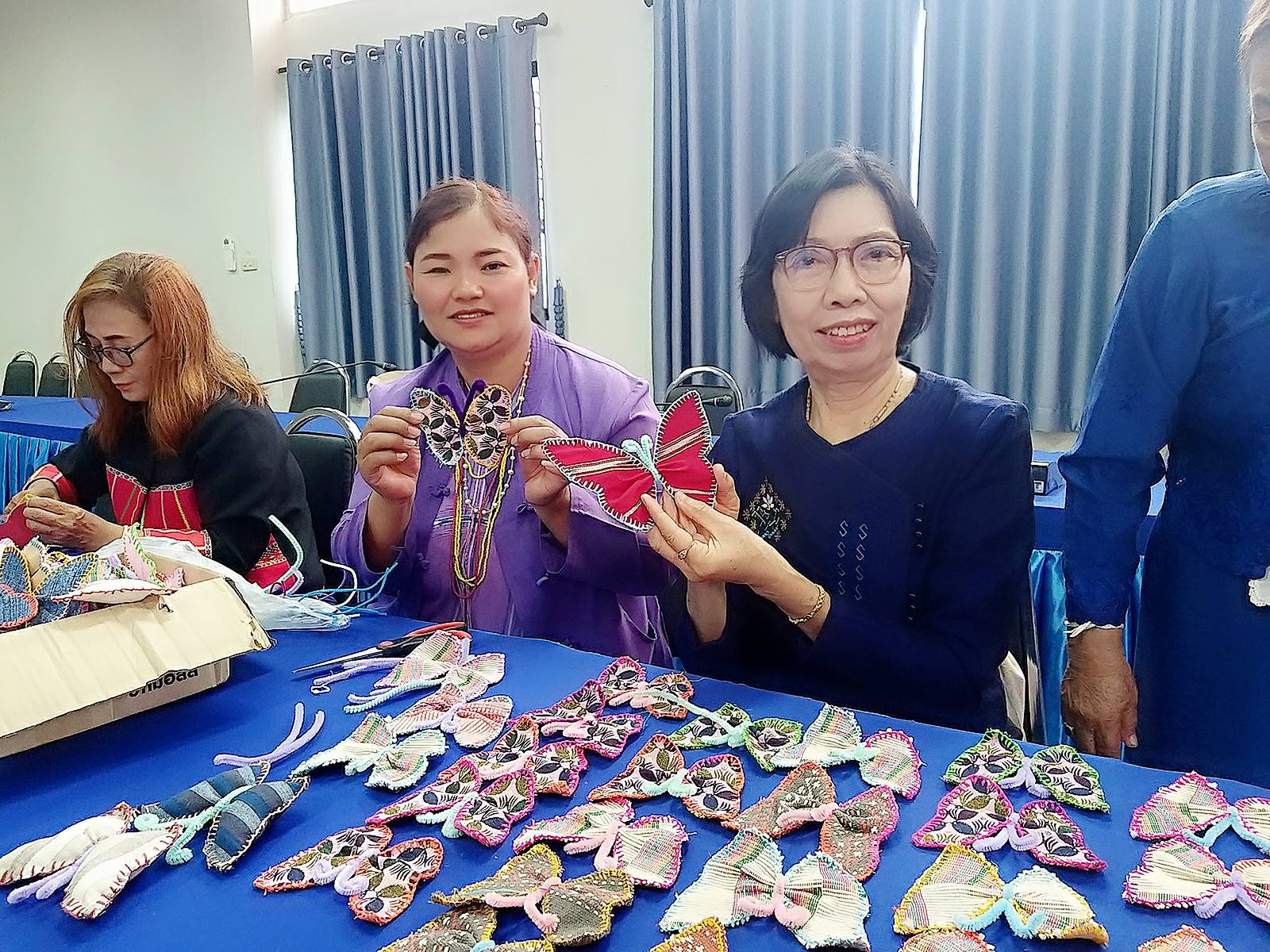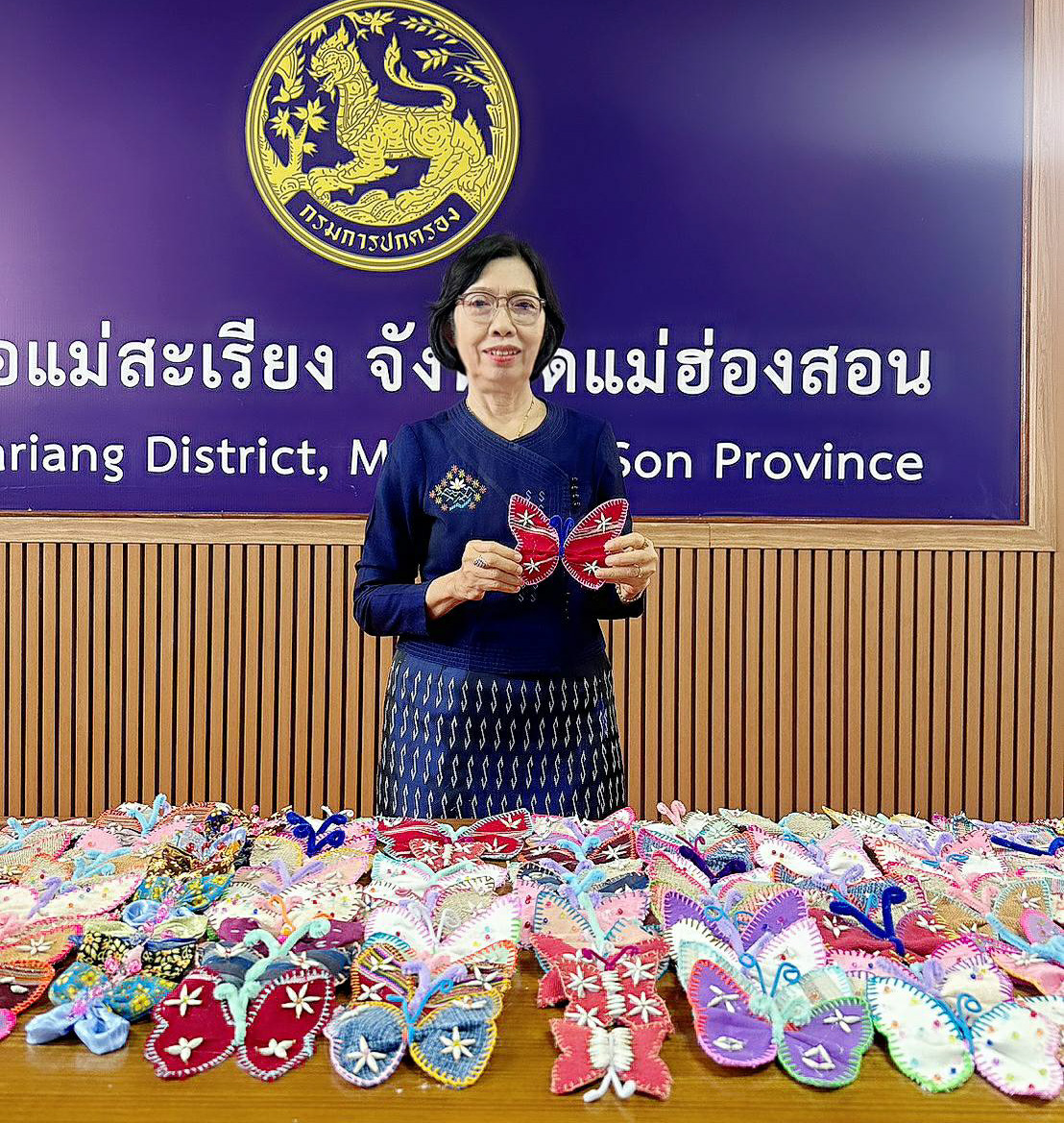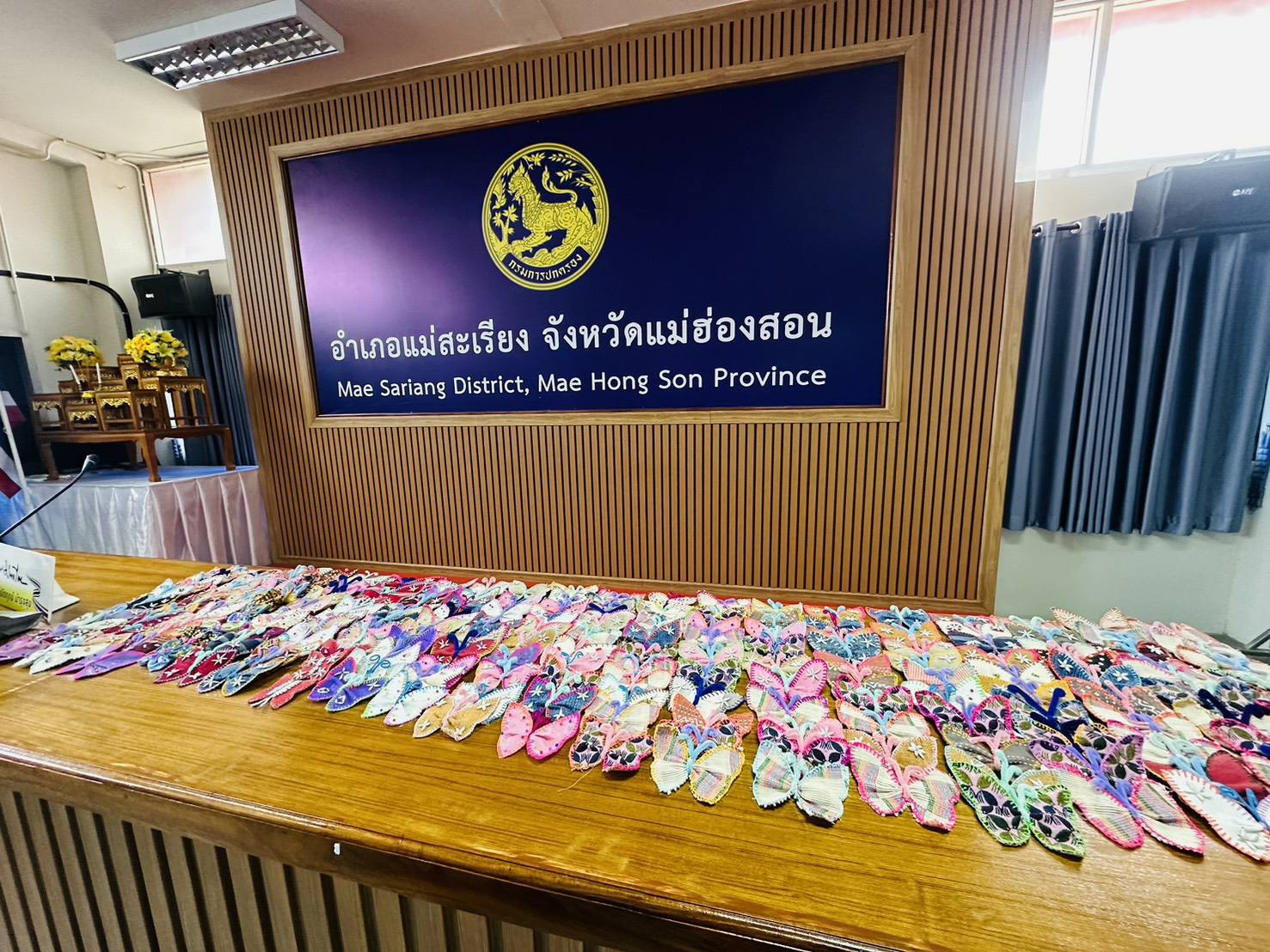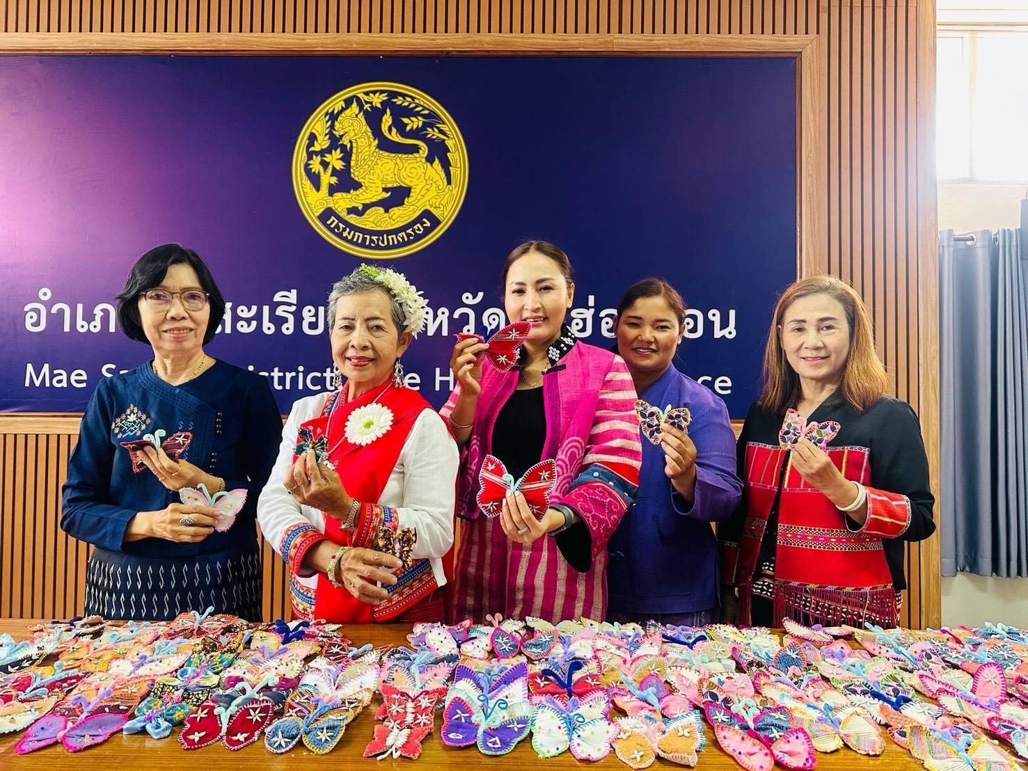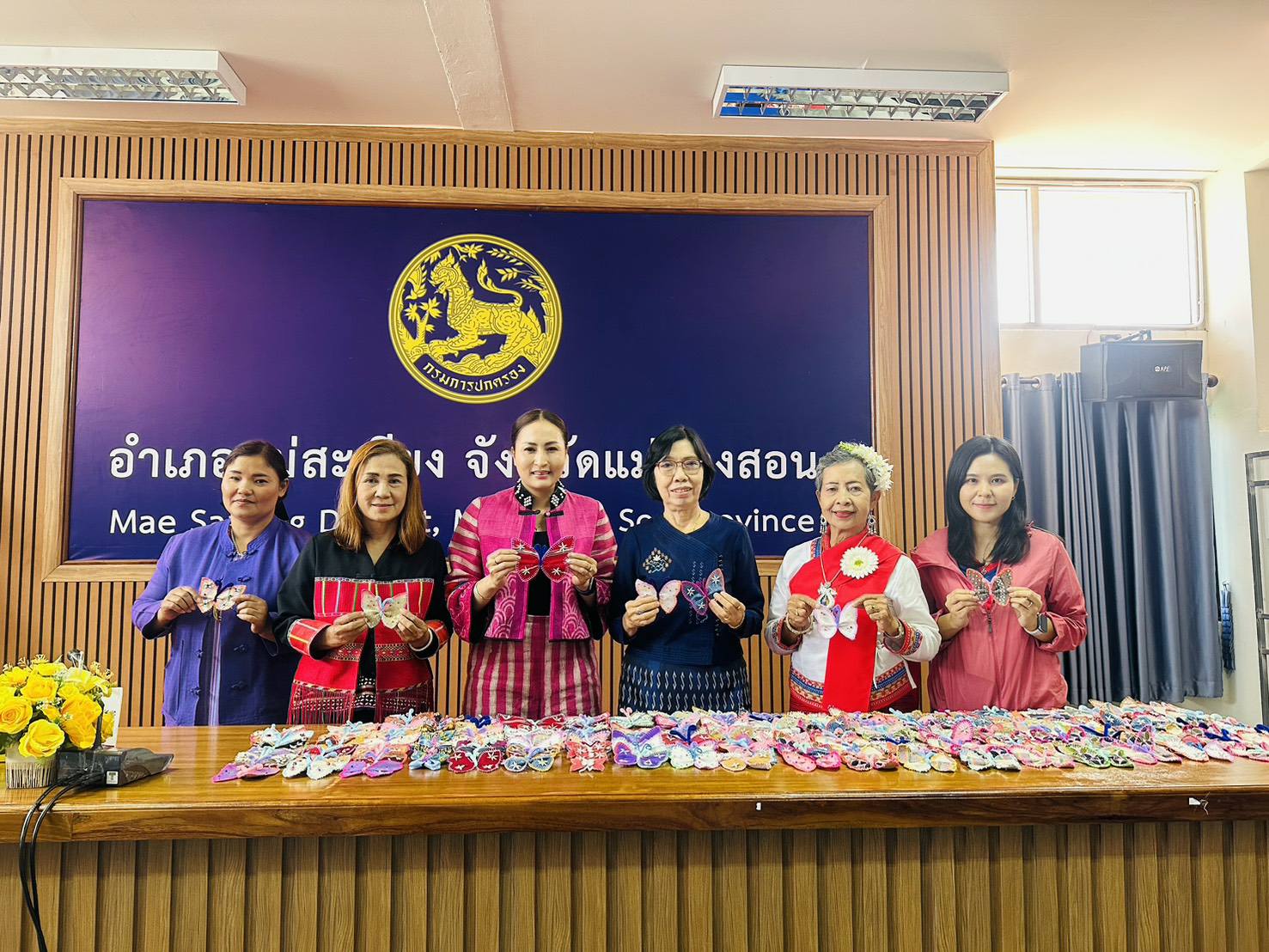 แม่บ้านมหาดไทยอำเภอแม่สะเรียง ร่วมกับกิ่งกาชาดอำเภอแม่สะเรียง และสำนักงานพัฒนาชุมชน ร่วมใจประดิษฐ์ “ผีเสื้อจากผ้าไทย” สนับสนุนงานกาชาดสมาคมแม่บ้านมหาดไทย