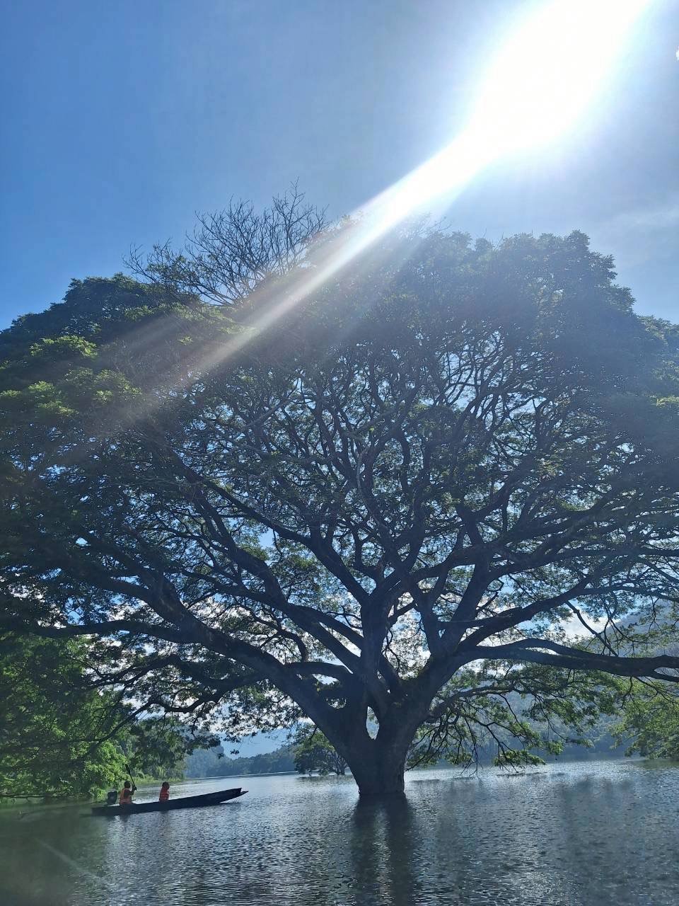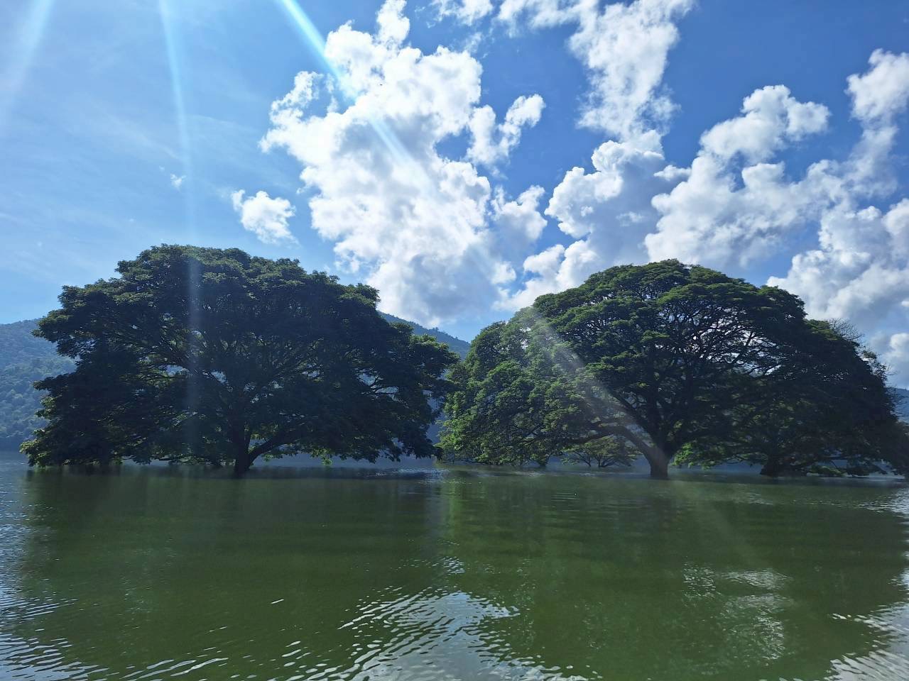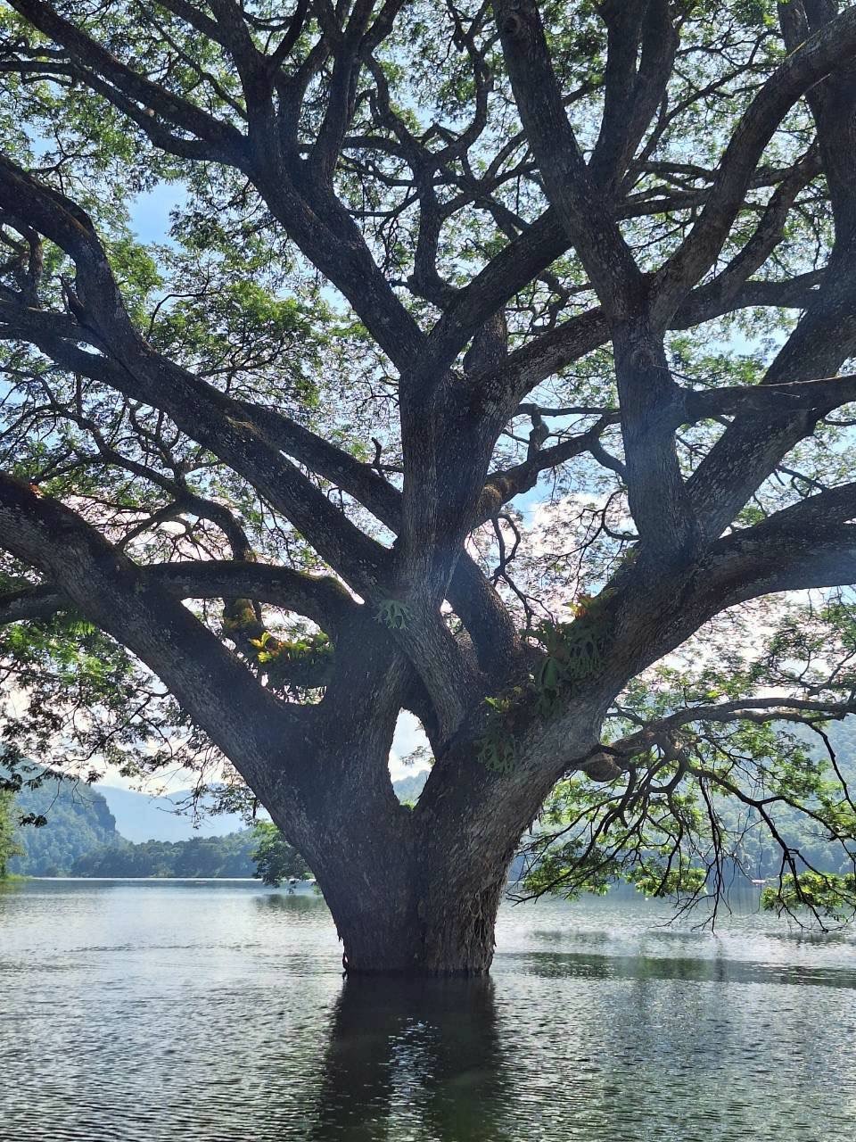 ขณะที่ในช่วงระยะนี้ เป็นช่วงที่บริเวณจุดนี้มีระดับน้ำจากเขื่อนแม่งัดสมบูรณ์ชล ขึ้นสูงจนทำให้ต้นฉำฉายักษ์สีเขียวขจี 5 ต้น ถูกน้ำขึ้นสูงมากว่า 4 เมตร จนหลายเป็นภาพสวยงามที่เหมือนว่าต้นฉำฉายักษ์ทั้ง 5 ต้นนี้ กำลังลอยอยู่บนผิวน้ำตัดกับท้องฟ้าสีคราม สร้างความตื่นตาตื่นใจให้กับนักท่องเที่ยวที่พบเห็น โดยเฉพาะในช่วงของยามเช้าและยามเย็นพระอาทิตย์ตก ที่มีแสงแดดสาดส่องลอดผ่านกิ่งไม้และใบของต้น นอกจากนี้ยังมีทิวทัศน์ล้อมลอบด้วยภูเขา และทิวทัศน์ความสวยงามของกลางลำน้ำ 360 องศา