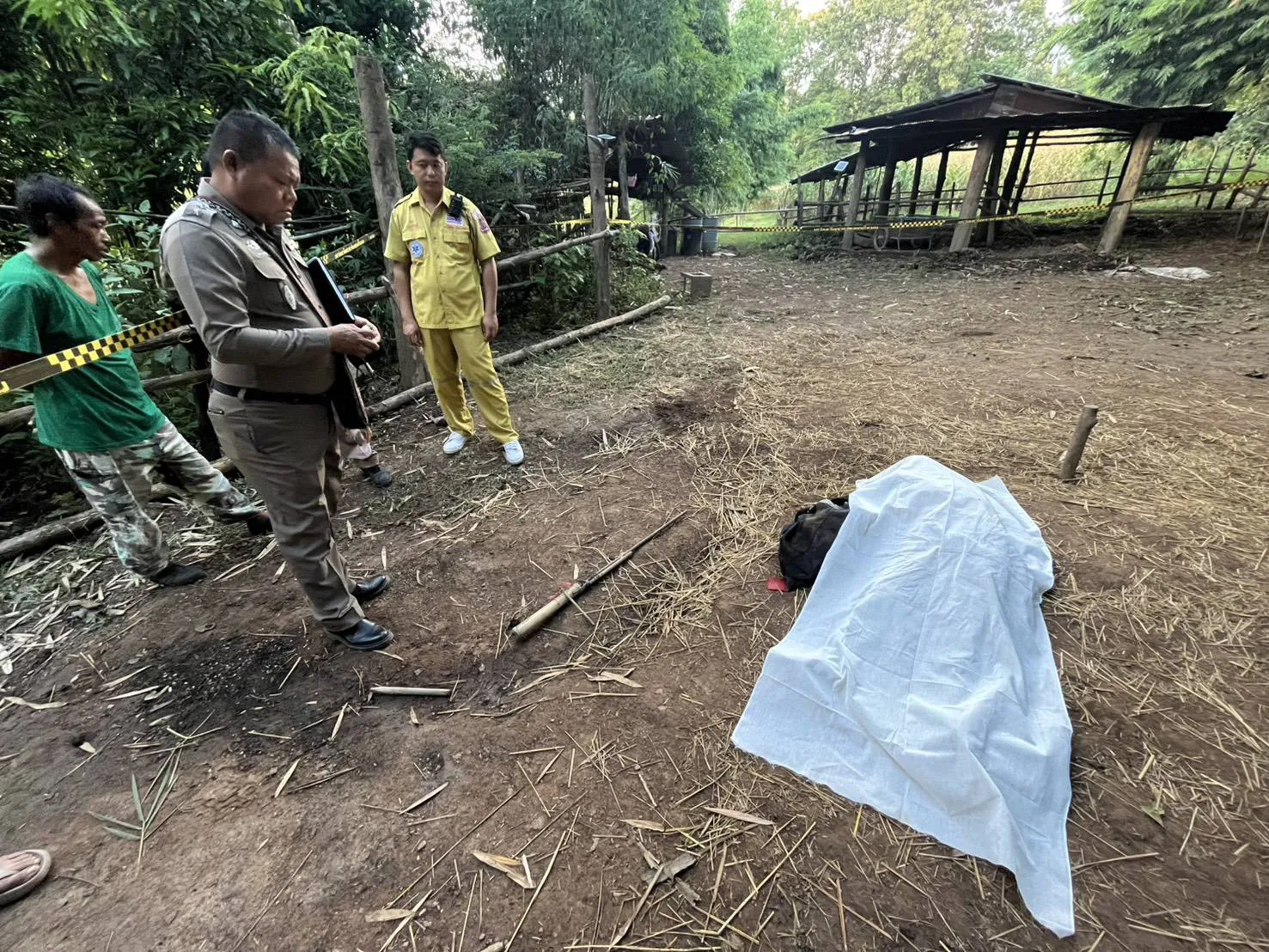 เมื่อถึงที่เกิดเหตุพบผู้เสียชีวิตเป็นชายทราบชื่อในเวลาต่อมา คือนายเงิน (สงวนนามสกุล) อายุ 59 ปี พบจั่นห้าวตกอยู่ใกล้ ๆ ถูกจั่นห้าวหรือปืนยิงสัตว์ ยิงเข้าที่บริเวณหน้าท้อง เสียชีวืตในสวนบ้านแม่พวก หมู่ 5 ต.ห้วยไร่