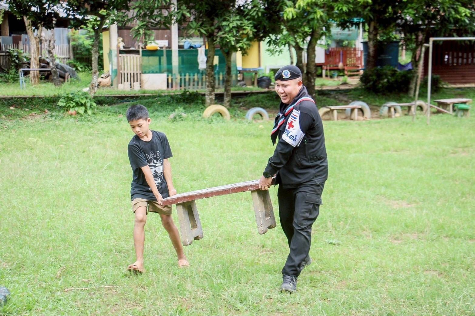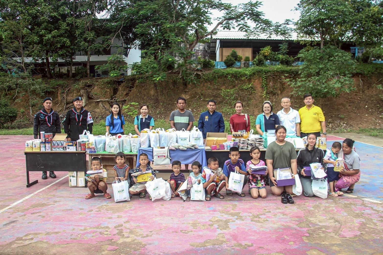 โดยได้ส่งมอบชุดนักเรียน รองเท้านักเรียน และอุปกรณ์การเรียน ชุดใหม่ น้ำดื่มนมยูเอชที จำนวน 32 ชุด สายส่งสัญญาณกระจายเสียงเตือนภัยในหมู่บ้านจำนวน 4 ชุด ให้ชุมชนบ้านป่าหมาก ต.บ้านกาศ โดยมี ผู้อำนวยการโรงเรียนบ้านป่าหมากและผู้ใหญ่บ้าน เป็นผู้รับมอบ