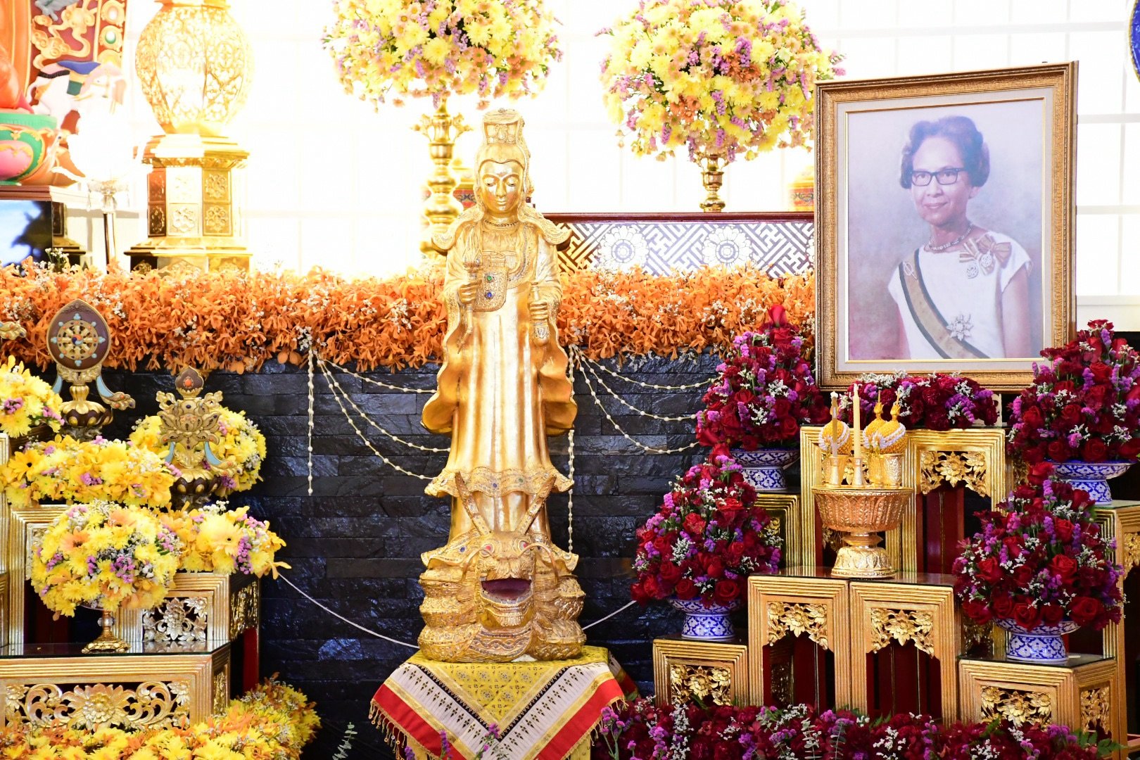 ในช่วงเช้า มีพิธีบำเพ็ญกุศลเนื่องในวันคล้ายวันพระราชสมภพ สมเด็จพระศรีนครินทราบรมราชชนนี พร้อมเจริญพระพุทธมนต์โดย พระพุทธิวงศ์วิวัฒน์ ที่ปรึกษาเจ้าคณะภาค 6 เจ้าอาวาสวัดพระสิงห์ (พระอารามหลวง) จังหวัดเชียงราย เป็นประธานฝ่ายสงฆ์ ร่วมด้วย พระปลัดเซ็งกิม กตสิทฺโธ ประธานสงฆ์วัดกิ่วกาญจน์ และคณะสงฆ์พระผู้ใหญ่จากวัดต่าง ๆ ในพื้นที่ จ.เชียงราย