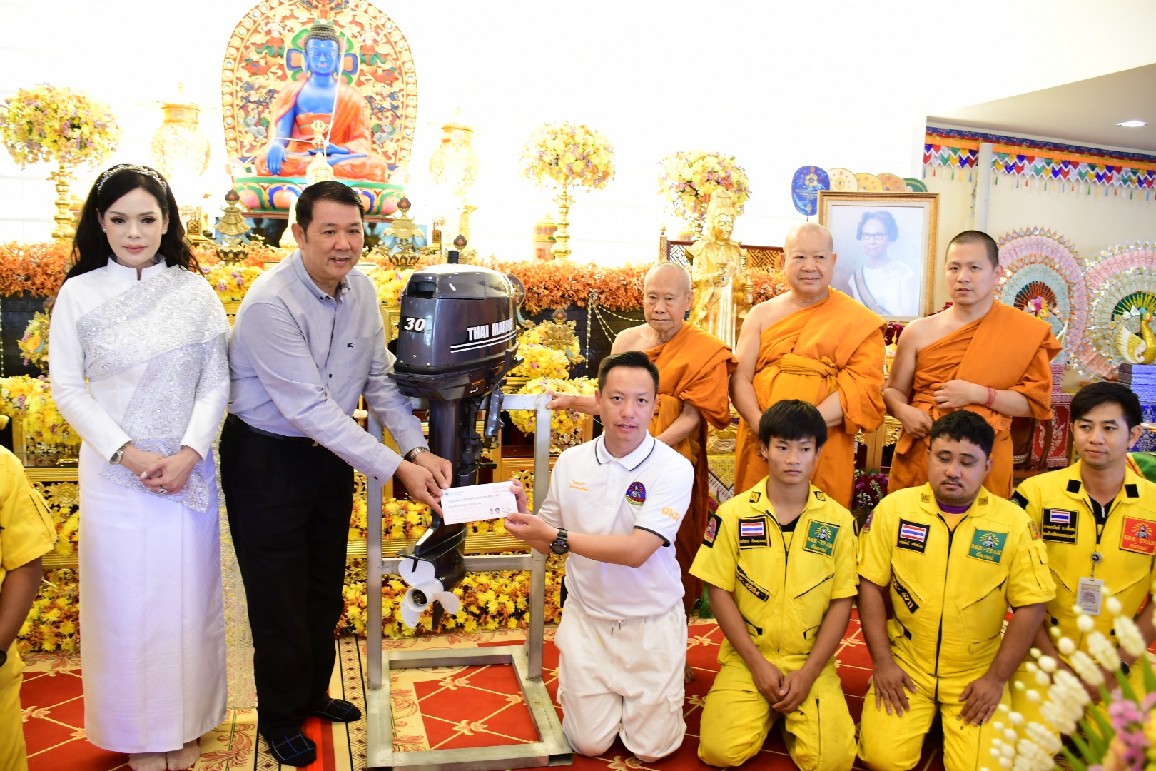 นอกจากนี้ พระพุทธิวงศ์วิวัฒน์ ที่ปรึกษาเจ้าคณะภาค 6 เจ้าอาวาสวัดพระสิงห์ (พระอารามหลวง) จังหวัดเชียงราย ยังได้มอบทุนการศึกษาให้แก่สามเณรในวัดกิ่วกาญจน์ เพื่อสนับสนุนการศึกษาพระธรรม พร้อมมอบเครื่องยนต์เรือตรวจการณ์ให้แก่ สมาคมศิริกรณ์เชียงรายบรรเทาสาธารณภัย เพื่อนำไปใช้ในการช่วยเหลือผู้ประสบภัยและภารกิจบรรเทาทุกข์ในพื้นที่จังหวัดเชียงราย