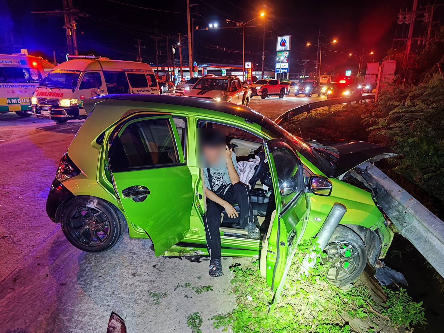 หลังเกิดเหตุ พ.ต.ท.จักรพงษ์ ศรีวาณิชย์กุล พนักงานสอบสวนเวร สภ.แม่สาย พร้อมเจ้าหน้าที่ตำรวจ และอาสากู้ภัย เข้าไปตรวจสอบ พบว่ารถยนต์ที่ก่อเหตุเป็นรถเก๋งฮอนด้า บริโอ้ สีเขียวท้ายดำ ติดแผ่นป้ายทะเบียน เชียงราย จึงควบคุมตัวคนขับคือ นายสมพงษ์ อายุ 26 ปี เป็นชาว ต.แม่สลองนอก อ.แม่ฟ้าหลวง จ.เชียงราย ไปที่ สภ.แม่สาย เพื่อดำเนินการตามขั้นตอนของกฏหมาย ซึ่งเบื้องต้นเจ้าหน้าที่ตำรวจได้มีการตรวจวัดแอลกอฮอล์ โดยให้นายสมพงษ์เป่าเครื่องเป่าแล้ว ผลการตรวจวัดพบว่าไม่ได้เมาสุรา แต่พูดจากวกวน ยียวนกวนประสาท