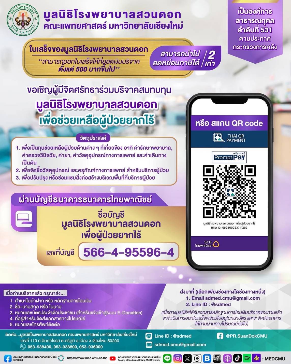 - ติดต่อ…มูลนิธิโรงพยาบาลสวนดอก คณะแพทยศาสตร์ มหาวิทยาลัยเชียงใหม่