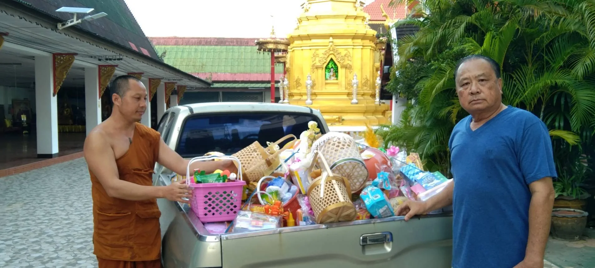 ส่วนสิ่งของ ได้รับมอบจาก วัดโลกโมฬี และได้รับการสนับสนุนจากพ่อกำนันอินถา หลวงใจ อดีตกำนันตำบลหนองควาย อ.หางดง จ.เชียงใหม่ พร้อมวัดบ้านฟ่อน หรือ วัดวุฑฒิราษฎร์ อ.หางดง จ.เชียงใหม่ ได้รับมอบเครื่องใช้ในครัวเรือน และเครื่องใช้ในการทำบุญ ซึ่งจะนำมอบให้ชาวบ้านต่อไป.
