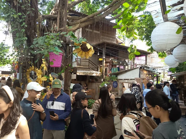 บ้านข้างวัด แหล่งรวบรวมงานศิลปะทุกแขนง มาพร้อมกับออกแบบในสไตล์หมู่บ้านงานคราฟต์ไม้เก่าสุดชิคซึ่งตั้งอยู่ใกล้กับวัดอุโมงค์ และวัดร่ำเปิง สถานที่แห่งนี้ได้รับการออกแบบมาเพื่อจำลองบรรยากาศชุมชนพื้นบ้านที่เรียบง่ายและอบอุ่น เน้นการอยู่อาศัยที่เกื้อกูลกันระหว่างศิลปินและคนรักงานศิลปะ ซึ่ง ณ ตอนนี้ “บ้านข้างวัด” ก็ได้กลายเป็นสถานที่ที่นักท่องเที่ยวต้องมาเช็คอินให้ได้