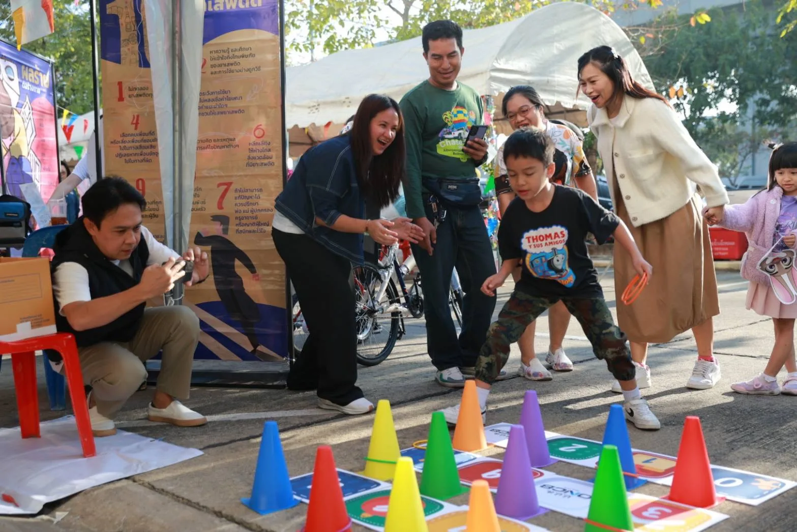บรรยากาศภายในงานเต็มไปด้วยความคึกคัก มีผู้บริหารและเจ้าหน้าที่ ป.ป.ส. นำโดย นางปะภาสี คัยนันท์ ผู้อำนวยการสำนักพัฒนาการป้องกันและแก้ไขปัญหายาเสพติด พร้อมด้วยภาคีเครือข่าย อาทิ นางสาวสุภัญญา โม้วงศ์ ผู้อำนวยการโรงเรียนบางเขน (ไว้สาลีอนุสรณ์) และคณะผู้บริหาร, นายไพรัฐ ชะบางบอน ประธานชุมชนหลังแฟลตร่วมพัฒนา เขตหลักสี่ ตลอดจนผู้ปกครองและเด็กๆ เข้าร่วมกิจกรรมกว่า 400 คน