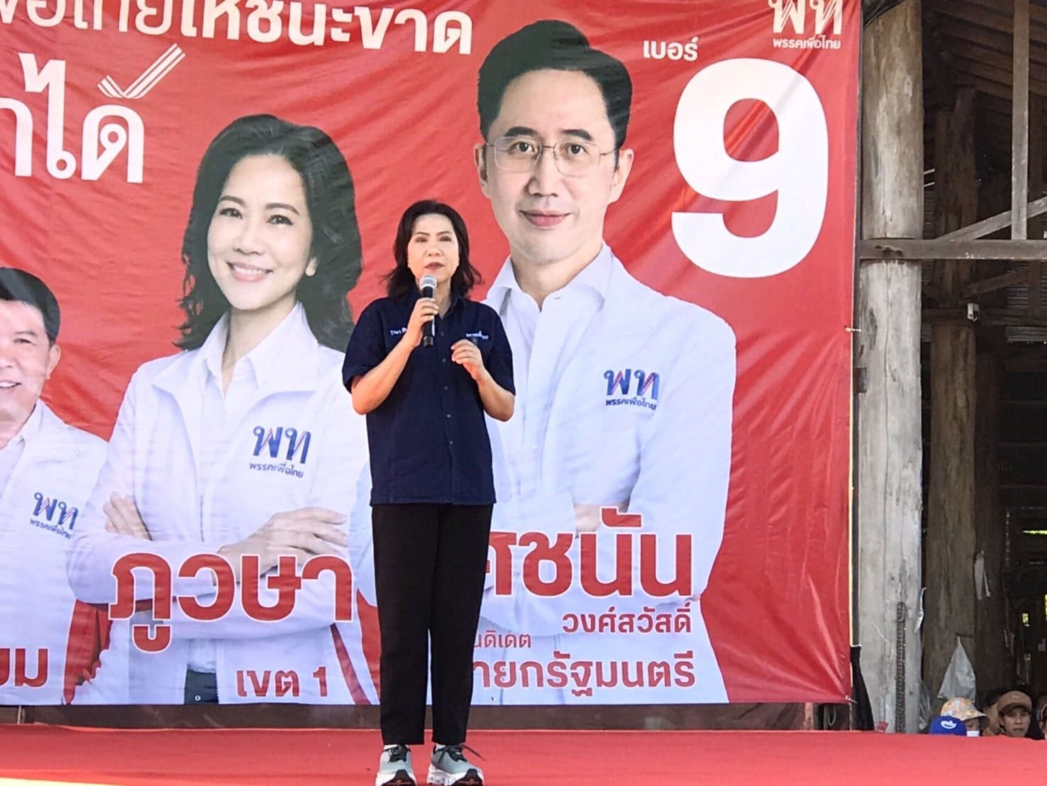 การปราศรัยครั้งนี้ พรรคเพื่อไทยได้นำเสนอนโยบายมุ่งแก้ไขปัญหาปากท้อง ยกระดับคุณภาพชีวิตประชาชน ภายใต้แนวคิด “คนไทยไร้จน” พร้อมชูนโยบายเด่น อาทิ นโยบาย 30 บาทรักษาทุกที่ รวมถึง “หวยเกษียณ” ที่เปลี่ยนเงินซื้อหวยมาเป็นเงินออมในอนาคต รวมถึงนโยบายเงิน 1 หมื่น สมัยนายกอุ้งอิ้ง ซึ่งได้รับเสียงชื่นชมและการตอบรับอย่างอบอุ่นจากชาวบ้านที่เห็นว่านโยบายของพรรคเพื่อไทยเป็นนโยบาย ที่ทำเพื่อประชาชนอย่างแท้จริง