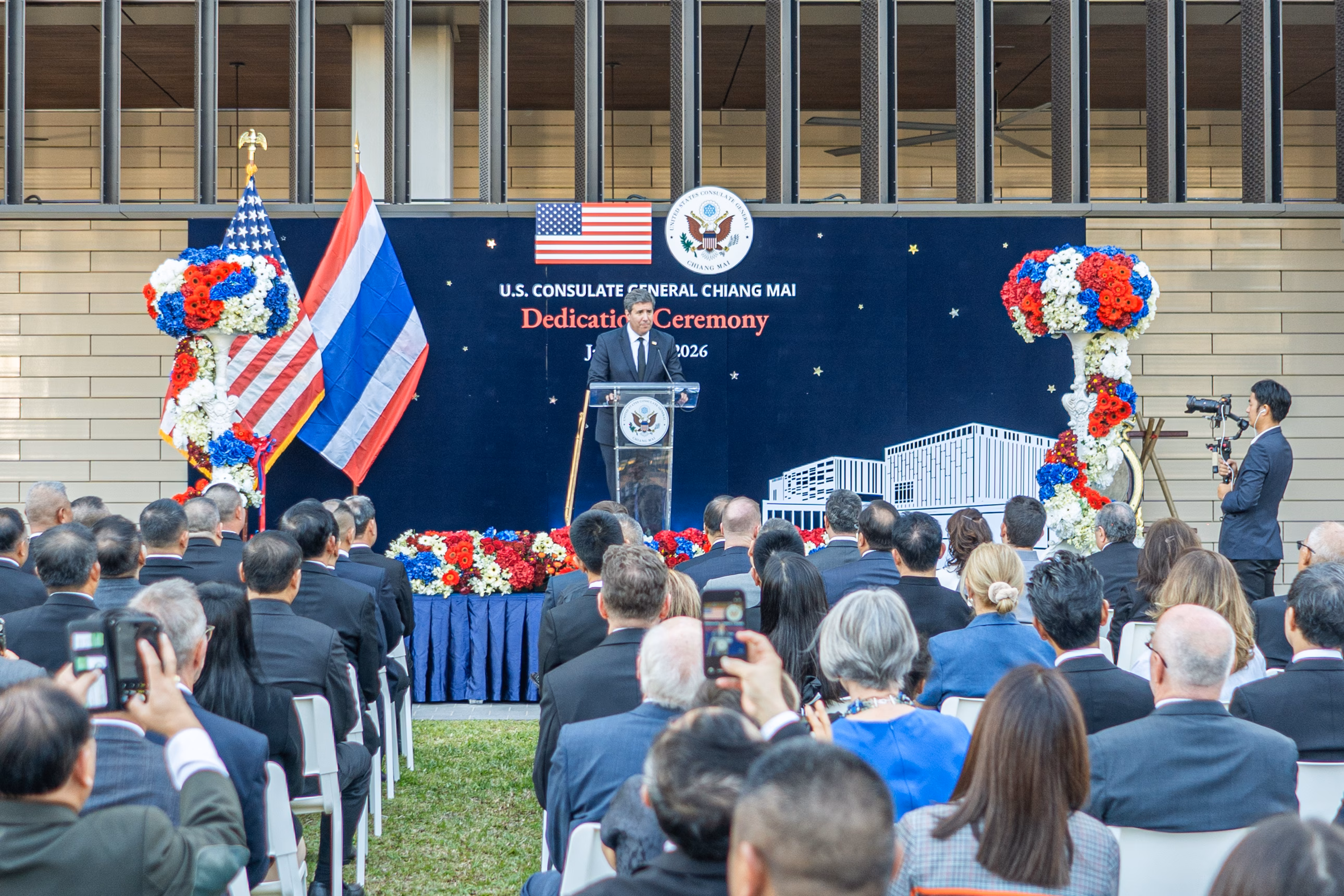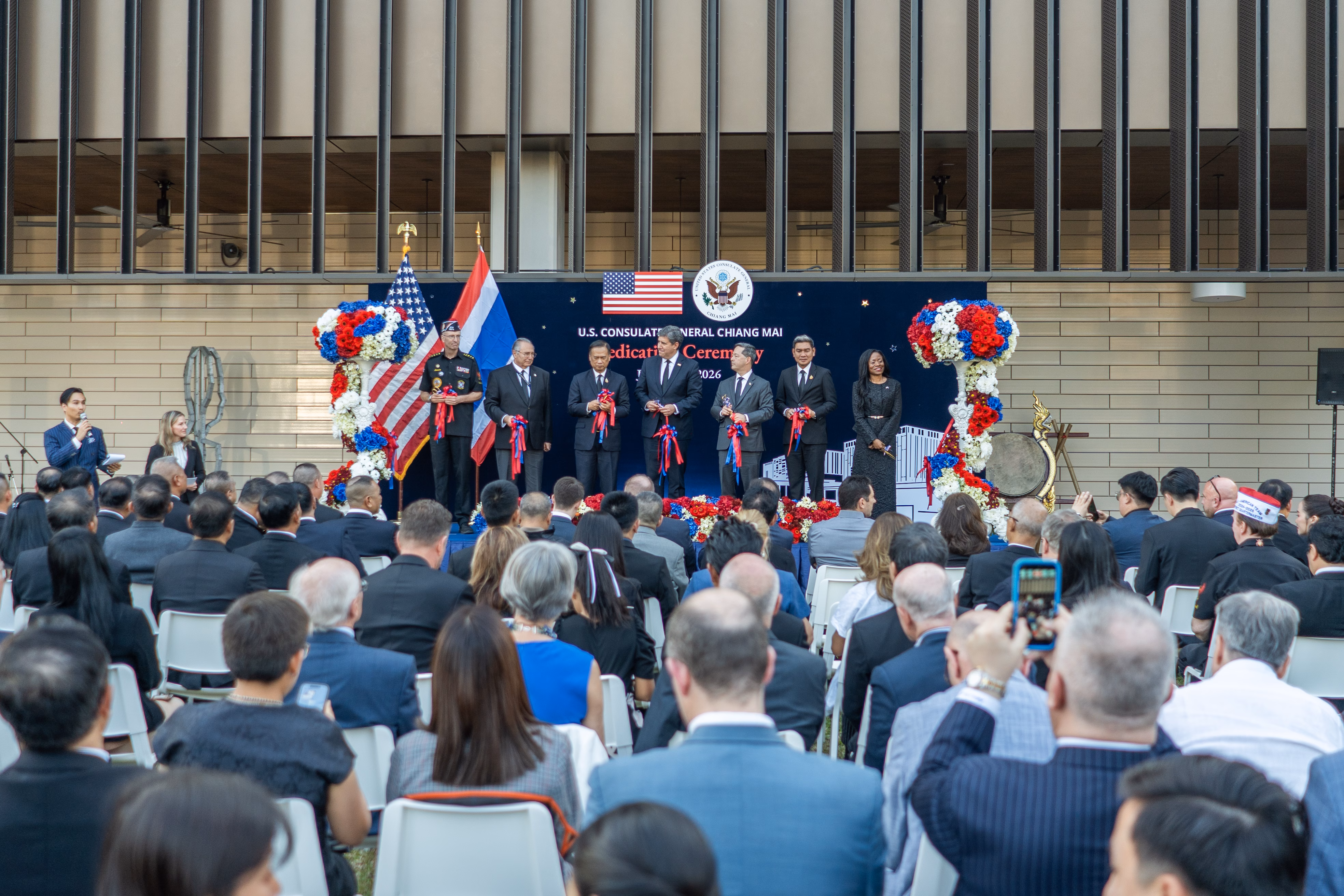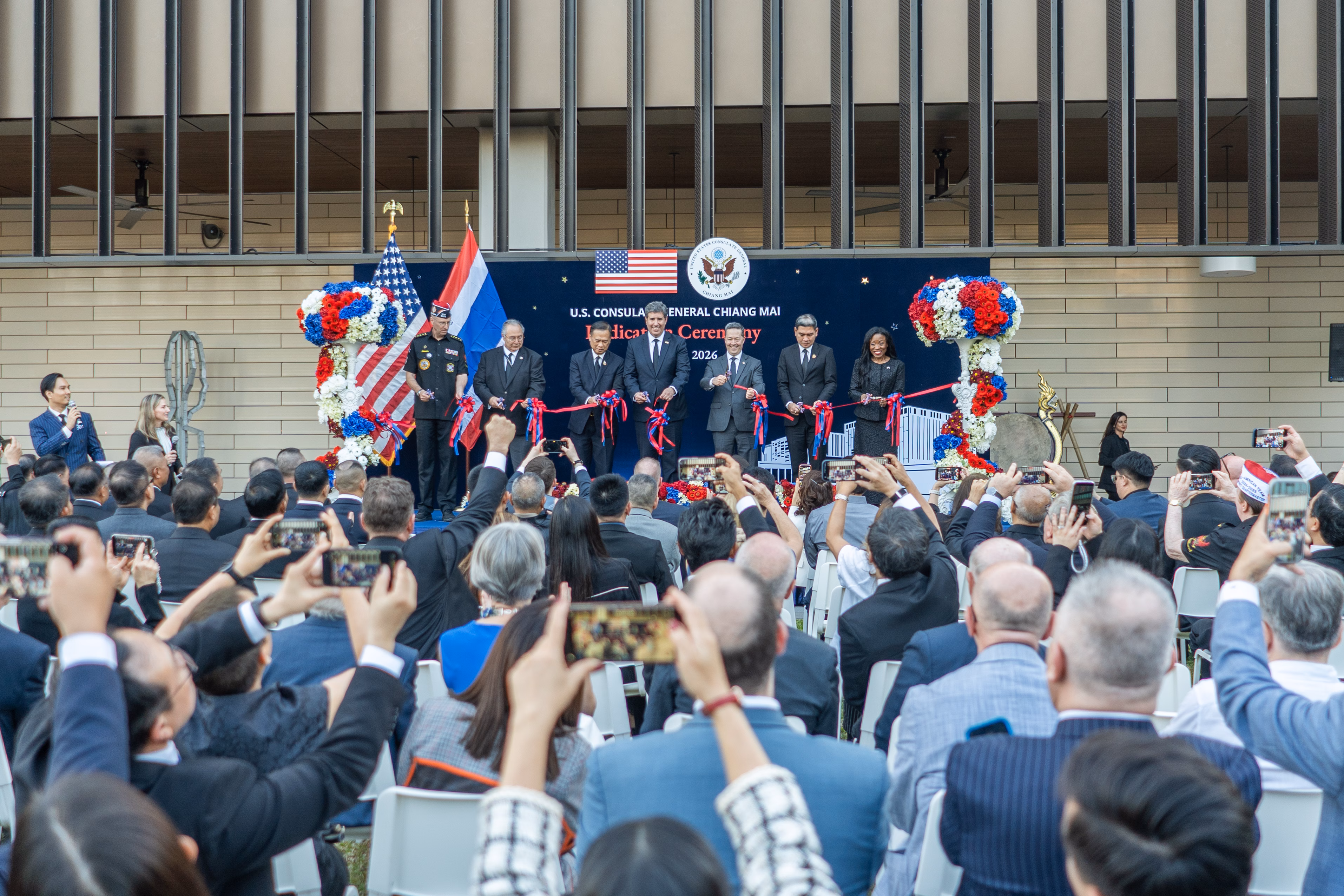 พิธีเปิดซึ่งมีรัฐมนตรีช่วยว่าการกระทรวงการต่างประเทศสหรัฐฯ ฝ่ายบริหารธุรการและทรัพยากร ไมเคิล เจ. รีกาส และเอกอัครราชทูตสหรัฐฯ ประจําประเทศไทย ฌอน เค. โอนีลล์ ร่วมเป็นประธาน เน้นยํ้าบทบาทของอาคารสถานกงสุลใหม่แห่งนี้ ในฐานะศูนย์กลางที่ปลอดภัยและทันสมัย ในการให้บริการพลเมืองอเมริกันกว่า 21,000 คนทั่วภาคเหนือของไทย ตลอดจนการทํางานกับภาคีชาวไทย ในการทําให้ประเทศของเราทั้งสองปลอดภัยขึ้น แข็งแกร่งขึ้น และมั่งคั่งขึ้นกว่าเดิม