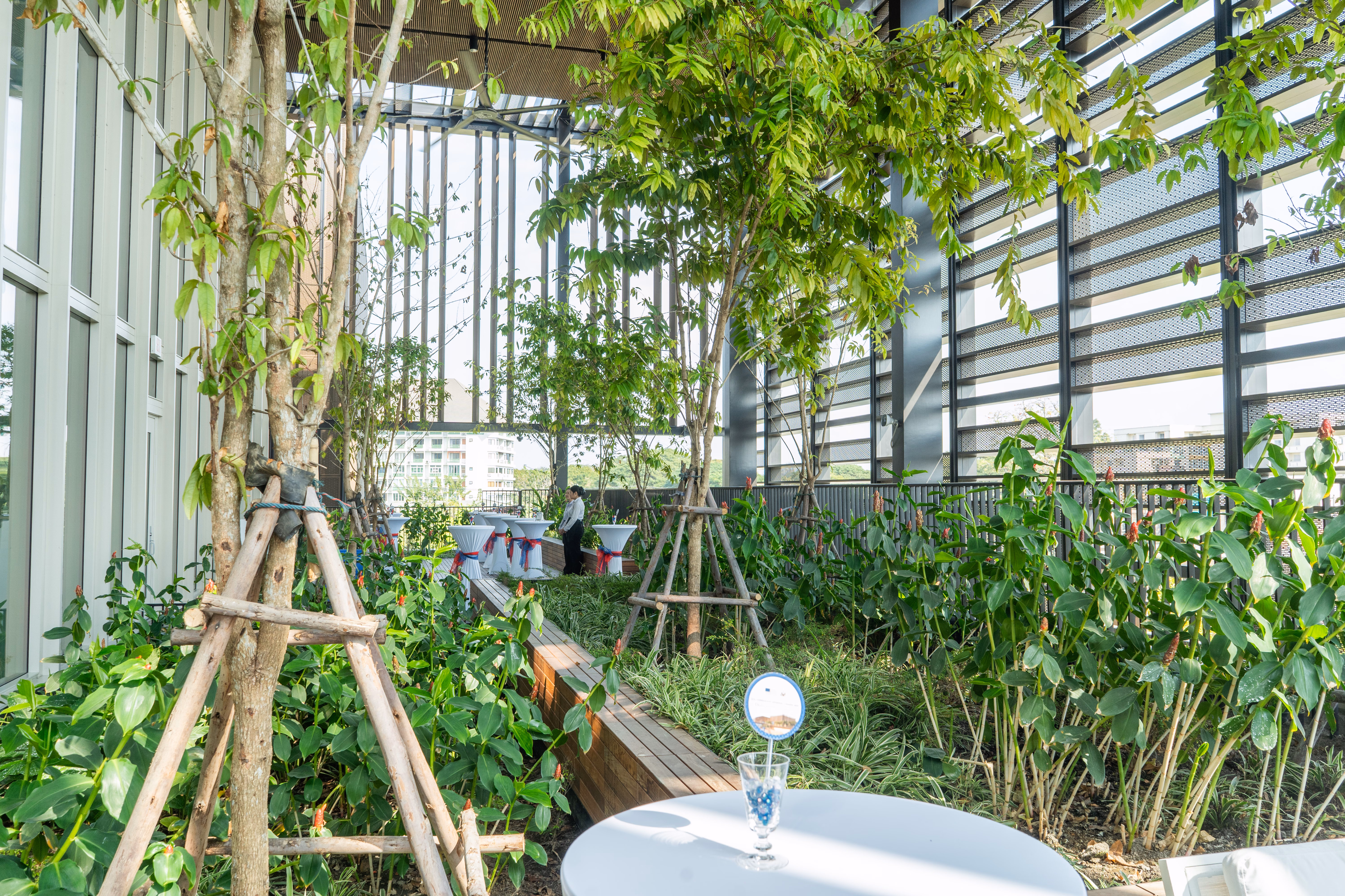 ชาน: อาคารได้รับแรงบันดาลใจมาจากบ้านแบบดั้งเดิมในพื้นที่ทางเหนือของไทย ซึ่งจะมีห้องอยู่รอบ ๆ ชานที่เป็นระเบียงส่วนกลาง จึงมีอาคารหลังเล็กรอบ ๆ พื้นที่ส่วนกลางที่ใช้ร่วมกัน