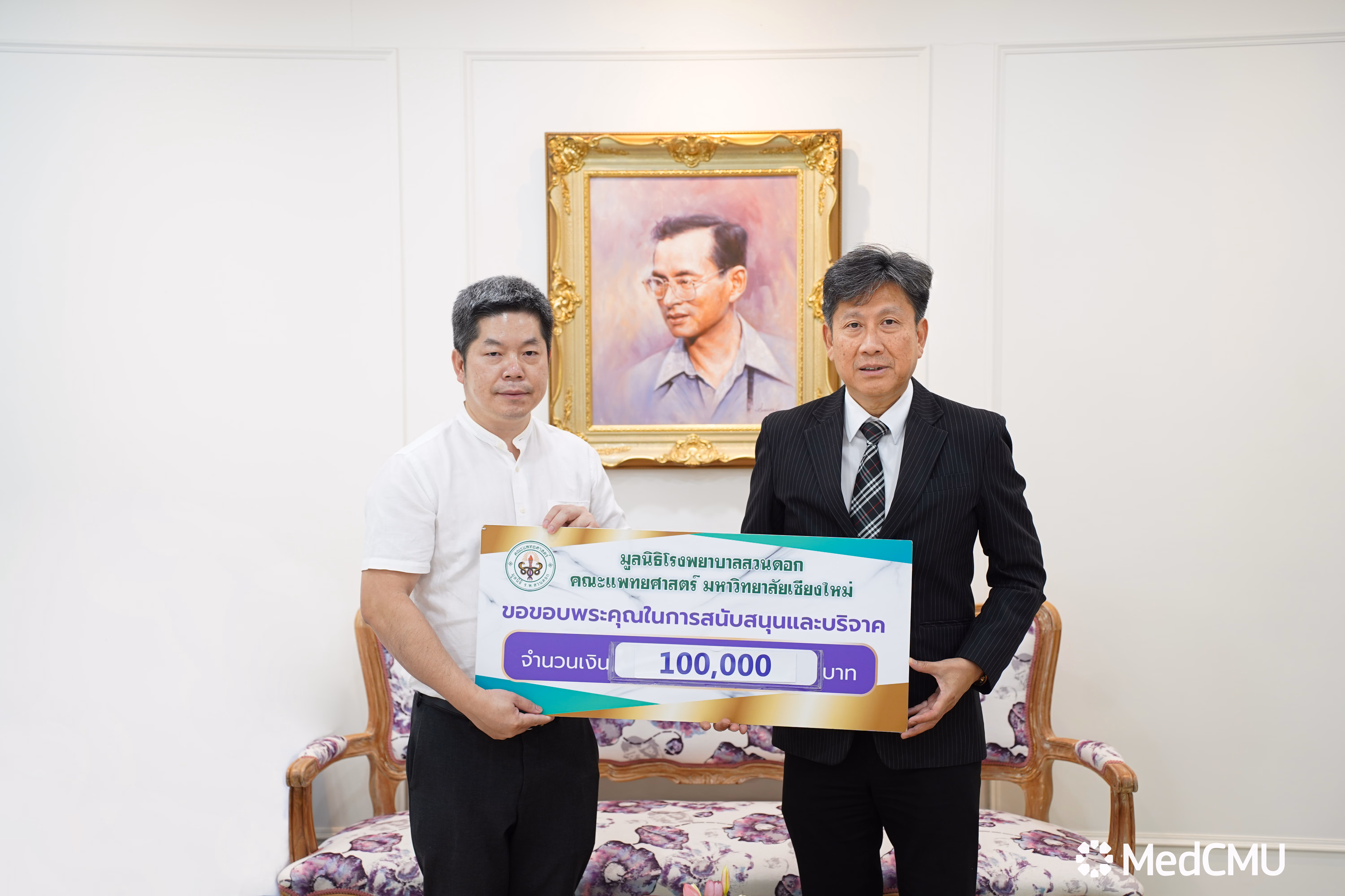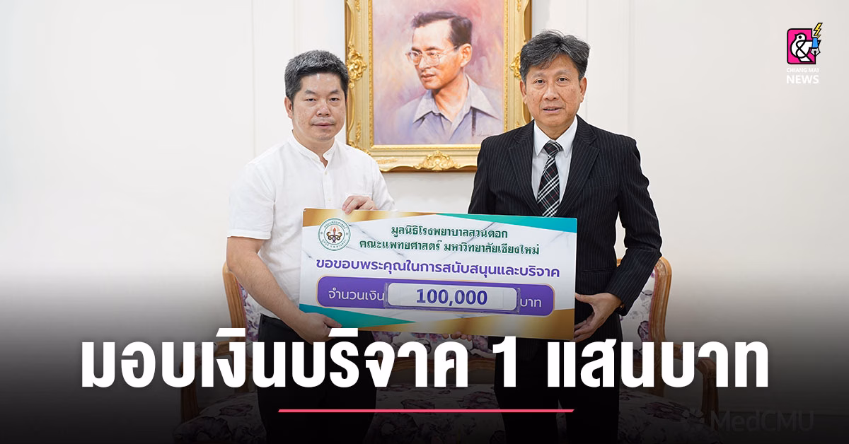 รับมอบเงินบริจาค สมทบทุนมูลนิธิโรงพยาบาลสวนดอก เพื่อจัดซื้อครุภัณฑ์ทางการแพทย์อาคารสุจิณฺโณ คณะแพทยศาสตร์ มหาวิทยาลัยเชียงใหม่