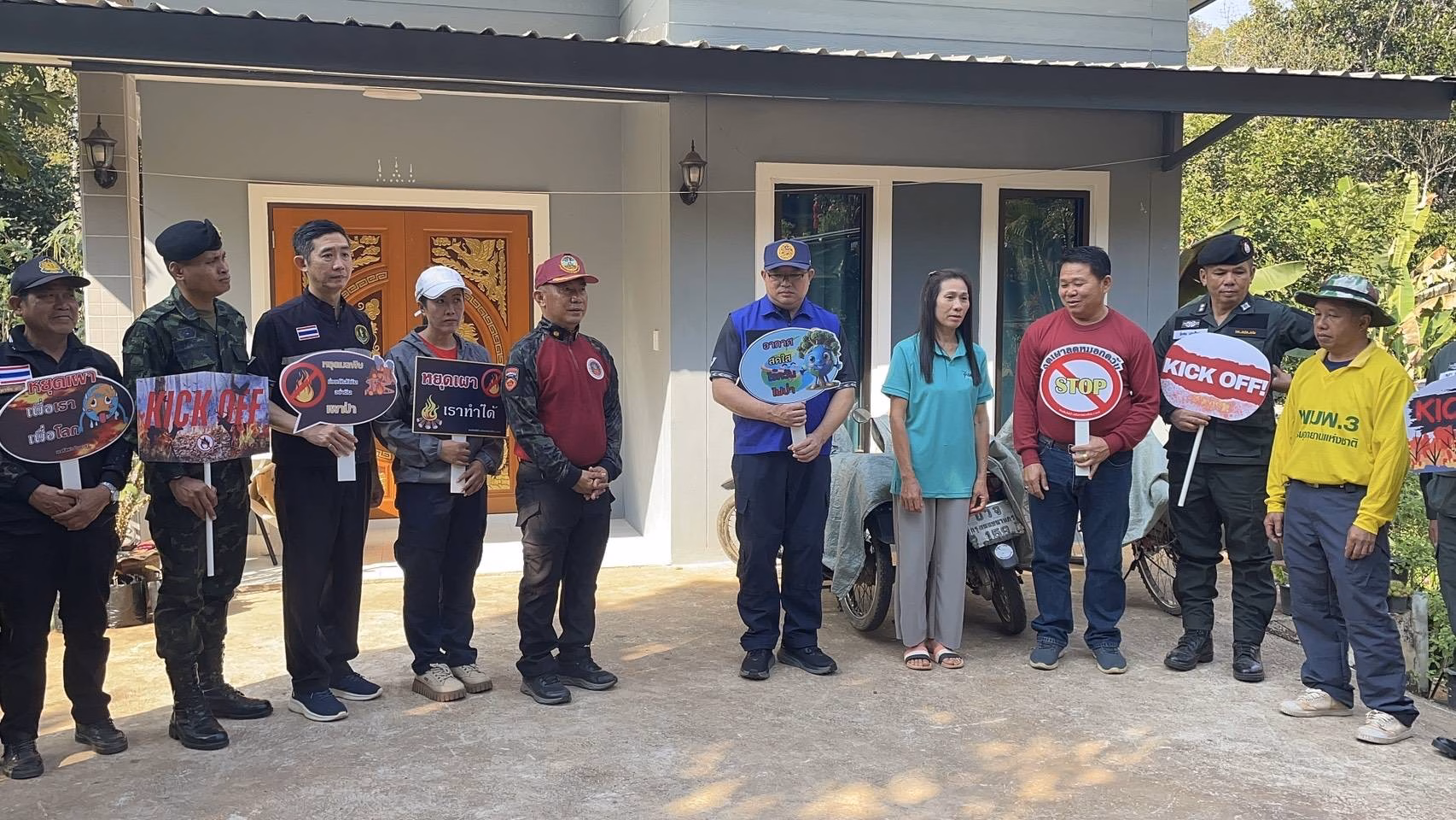 ภายหลังพิธีเปิด คณะผู้ร่วมกิจกรรมได้ลงพื้นที่รณรงค์แบบ “เคาะประตูบ้าน” สร้างการรับรู้แก่ประชาชนในหมู่บ้านน้ำพาง ตำบลน้ำพาง เพื่อขอความร่วมมืองดการเผาในที่โล่ง ลดปัจจัยเสี่ยงการเกิดไฟป่าและปัญหาหมอกควัน