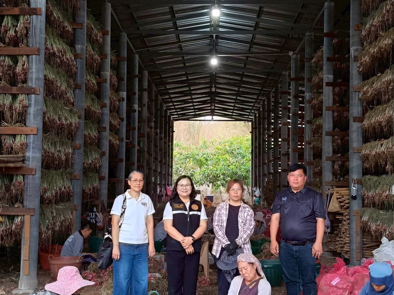 วันที่ 14 มีนาคม 2569 นางสาวจุฬารัตน์ นุ่มนิ่ม พาณิชย์จังหวัดลำพูน พร้อมด้วย นายพิทวัส สุสิงสา หัวหน้ากลุ่มส่งเสริมและพัฒนาการผลิต สำนักงานเกษตรจังหวัดลำพูน และเจ้าหน้าที่ลงพื้นที่พบปะ นายสนั่น อุตมะ ประธานแปลงใหญ่กระเทียมหอมแดงตำบลศรีวิชัย อำเภอลี้ จังหวัดลำพูน เพื่อติดตามการรับซื้อ/ส่งมอบหอมแดง ตามที่ได้มีการลงนามบันทึกข้อตกลงเชื่อมโยงเจรจารับซื้อหอมแดงระหว่างกลุ่มแปลงใหญ่ฯและ บริษัท อโกรไทย ยูเนี่ยน จำกัด โดยจำหน่ายได้ในราคากิโลกรัมละ 12-16-22 บาท (ตามขนาดเล็ก กลาง ใหญ่)