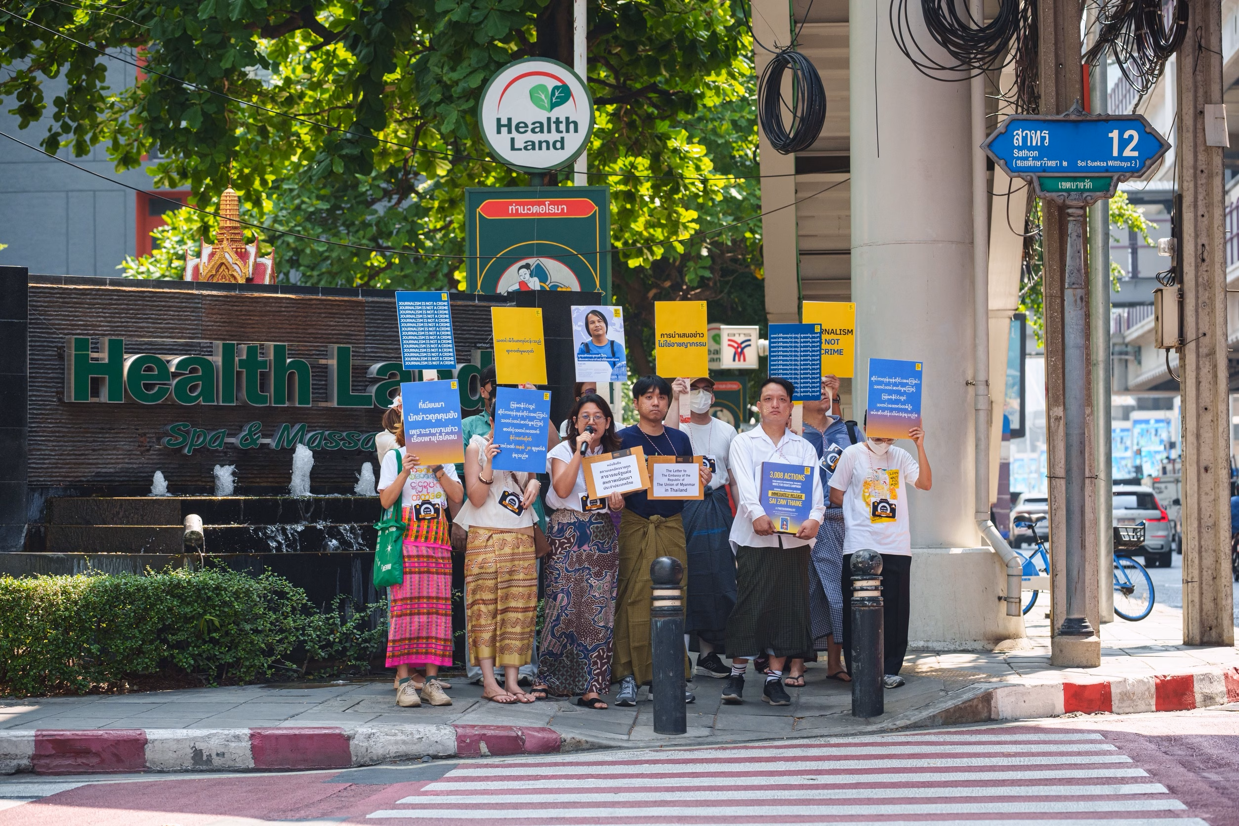 ผู้เข้าร่วมกิจกรรมได้ทำกิจกรรมเชิงสัญลักษณ์ภายใต้แนวคิด “Capture the Truth is Not a Crime” การบันทึกความจริงไม่ใช่อาชญากรรมด้านหน้าสถานทูตเมียนมา ถือป้ายข้อความ และเปล่งเสียงพร้อมกันว่า “Free Sai Zaw Thaike” พร้อมกัน 3 ครั้ง เสียงที่พูดออกมาพร้อมกันในกิจกรรม ไม่ใช่แค่การเรียกร้องให้ปล่อยตัวเขา แต่ยังเป็นการยืนยันร่วมกันว่าการนำเสนอความจริงไม่ควรถูกดำเนินคดีหรือมีความผิด