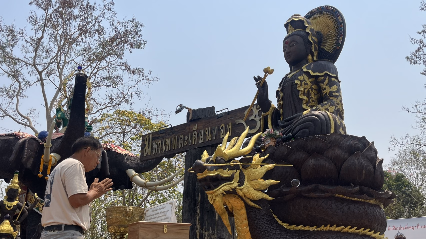 “ล่าสุด ผมได้แกะสลักพญาครุฑ จากไม้ตะเคียนทอง และเจ้าแม่กวนอิมจากไม้ตะเคียนทอง สูง 4 เมตร 15 เซนติเมตร น้ำหนักประมาณ 8 ตัน นำมาประดิษฐานให้กราบไหว้บูชาขอพรที่หน้าพืชสวนโลกแห่งนี้ด้วย และในวันที่ 13 เมษายน 2569 นี้ จะอัญเชิญเจ้าแม่กวนอิมนำขึ้นรถ 6 ล้อ แห่รอบคูเมืองเชียงใหม่ตามขบวนแห่วันสงกรานต์ เพื่อให้ประชาชนชาวไทยและนักท่องเที่ยวได้สรงน้ำด้วย”