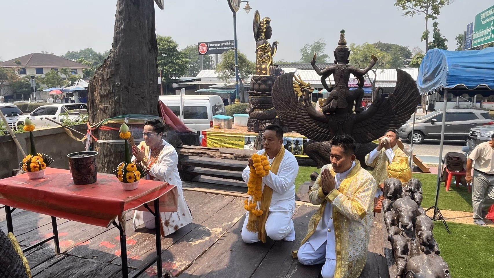เมื่อเช้าวันที่ 12 เมษายน 2569 ผู้สื่อข่าวรายงานที่ลานหน้ามหาเทพตะเคียนทอง สถานที่แสดงงานศิลปะประดิษฐานของพระอินทร์ทรงช้างเอราวัณ และพระพิฆเนศทรงช้างเอราวัล ที่แกะสลักจากไม้ตะเคียนทองทั้งองค์ พระอินทร์ทรงช้างเอราวัณมีความสูง 14.50 เมตร ใช้ไม้ตะเคียนทอง 19 ลำรถสิบล้อ น้ำหนักทั้งสององค์ องค์ละ 100 ตัน ถือว่าเป็นประติมากรรมที่ใหญ่ที่สุดในโลก แกะสลักด้วยช่างสล่าล้านนา อ.สันกำแพง จ.เชียงใหม่ ใช้เวลา 4 ปี ถือว่าเป็นสุดยอดของปฏิมากรรมแกะสลักจากไม้ตะเคียนทอง ประดิษฐานอยู่อยู่ถนนราชพฤกษ์ หน้าวงเวียนช้าง หน้าสวนราชพฤกษ์เชียงใหม่ หรือพืนสวนโลก หรือทางลงจากวัดดอยคำ (วัดชื่อดังด้ายเลขหวย ของเชียงใหม่) จะพบพญาช้างเอราวัลอยู่ซ้ายมือ โดยผู้เป็นเจ้าของคือ อาจารย์เข้ม มฤคพิทักษ์ อดีตข้าราชการมหาวิทยาลัยเชียงใหม่