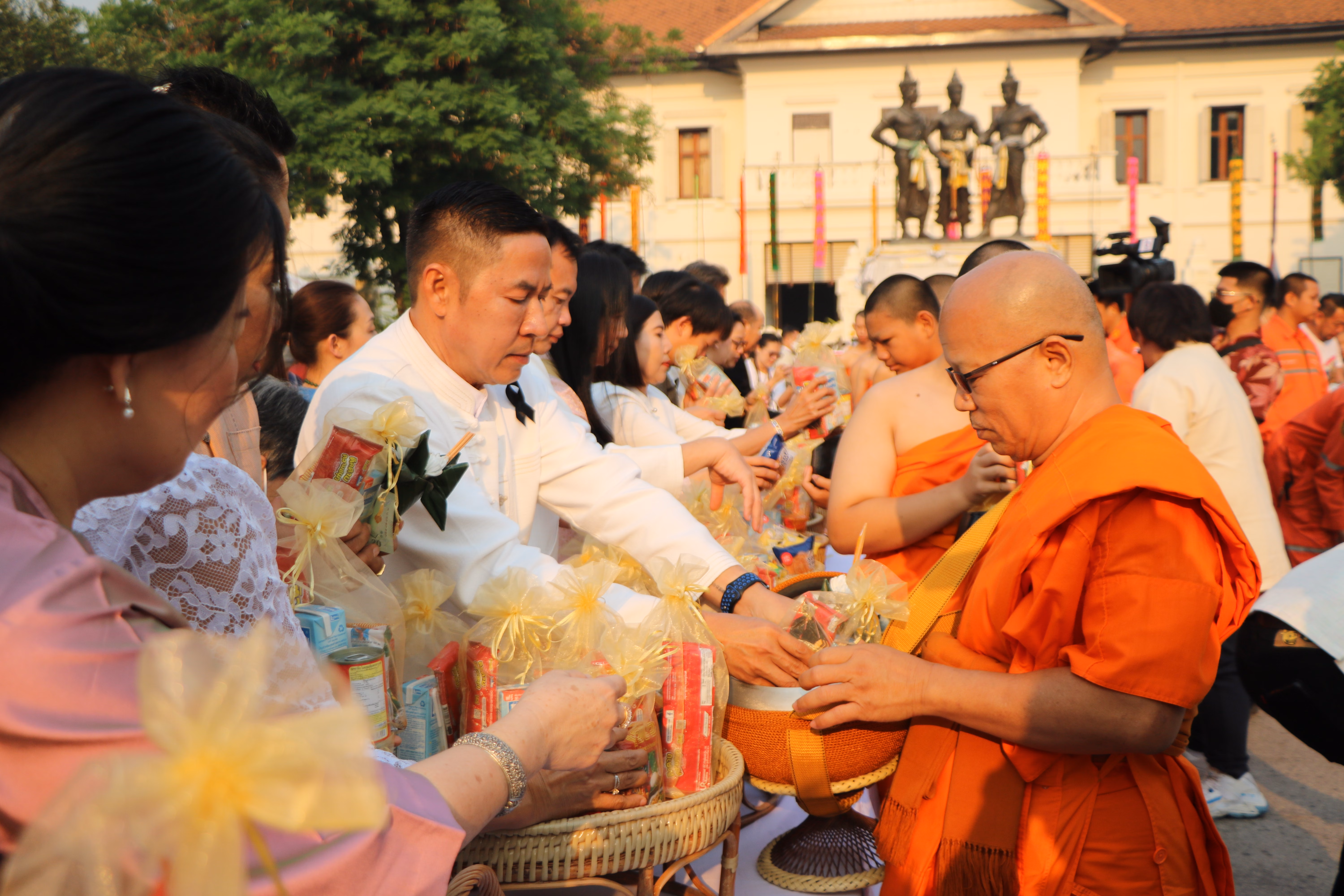 ภายหลังเสร็จสิ้นพิธีการ ผู้ว่าราชการจังหวัดเชียงใหม่ได้นำหัวหน้าส่วนราชการ ภาคเอกชน และประชาชน ร่วมใส่บาตรแด่พระภิกษุสามเณรอย่างพร้อมเพรียง ท่ามกลางบรรยากาศแห่งศรัทธาและความสามัคคีของชาวเชียงใหม่และนักท่องเที่ยวที่เข้าร่วมงานอย่างเนืองแน่น