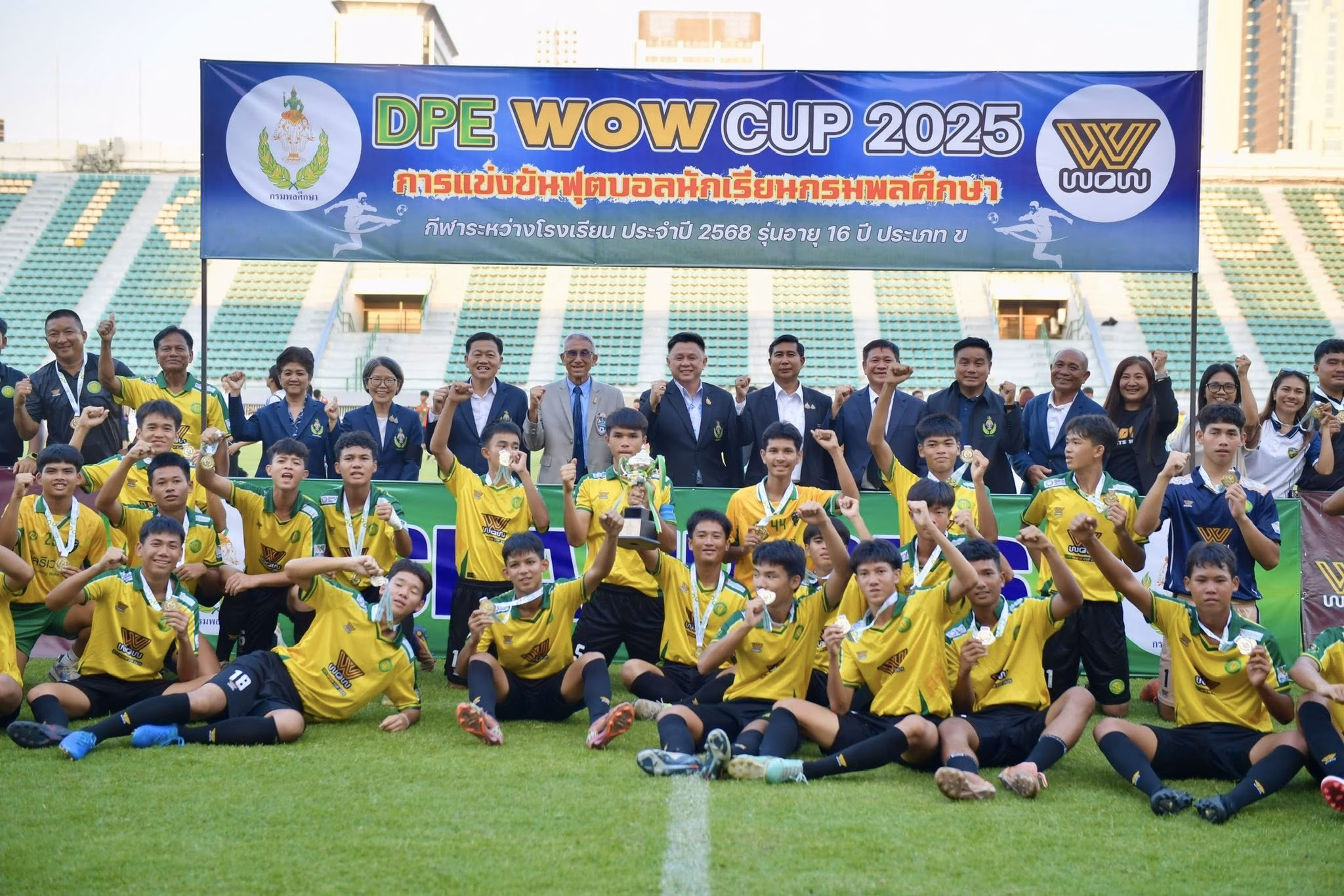 นายมงคล วิมลรัตน์ อธิบดีกรมพลศึกษามอบหมายให้ นายสุรัตน์ จรณโยธิน รองอธิบดีกรมพลศึกษา เป็นประธานมอบถ้วยรางวัล ในการแข่งขันฟุตบอลกรมพลศึกษา รุ่นอายุไม่เกิน 16 ปี ประเภท ข. “DPE WOW CUP 2025” ประจำปีการศึกษา 2569