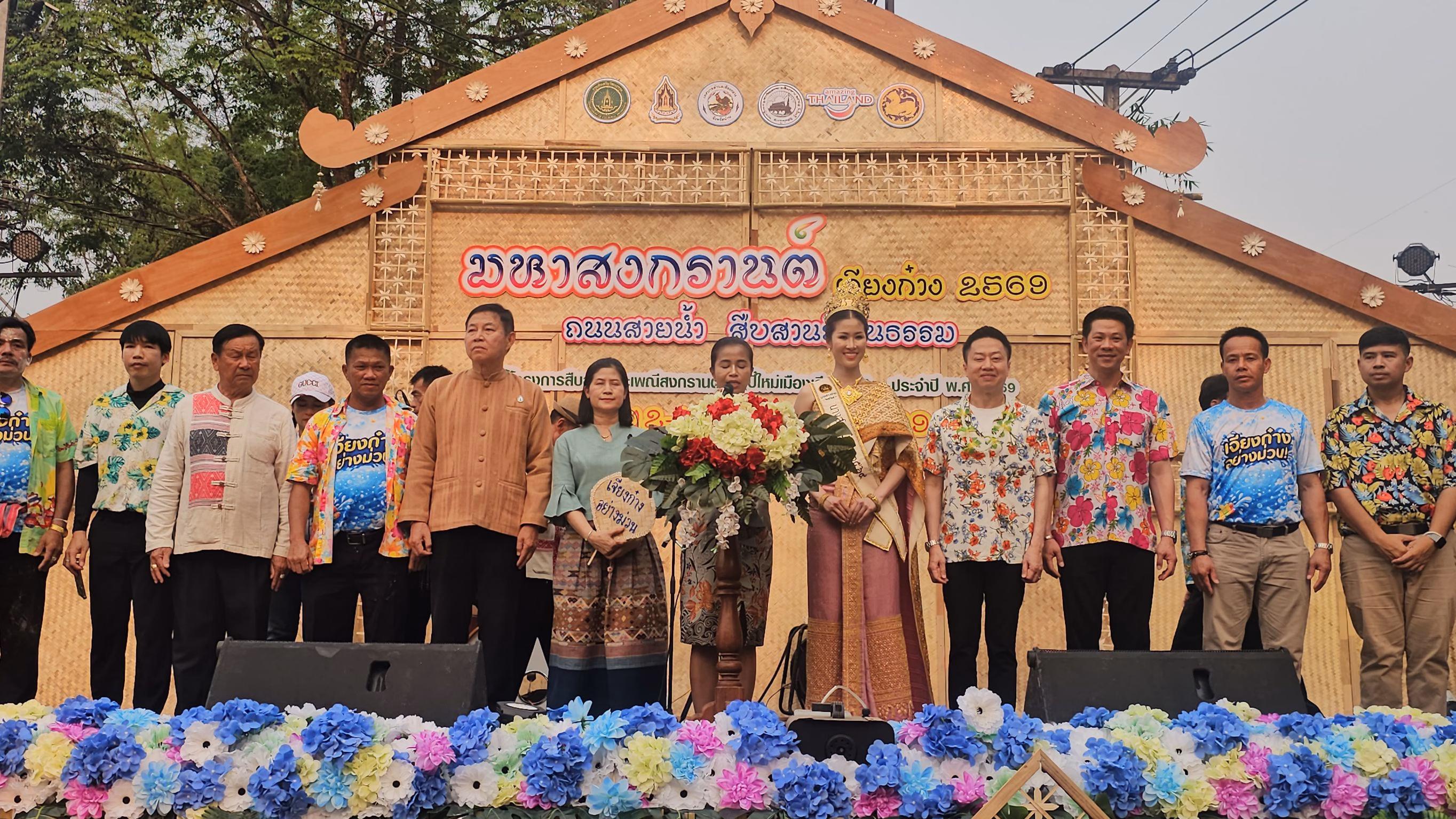 บรรยากาศคึกคักและยิ่งใหญ่ อำเภอเชียงกลาง จังหวัดน่าน ผนึกกำลังทุกภาคส่วน จัดงาน “มหาสงกรานต์เจียงก๋าง 2569 ถนนสาย น้ำ สืบสานวัฒนธรรม” ภายใต้โครงการสืบสานประเพณีสงกรานต์ (ปีใหม่เมืองเจียงก๋าง) ประจำปี พ.ศ. 2569 ณ ลานศาลเจ้าพ่อพญาไมย ตำบลเชียงกลาง อำเภอเชียงกลาง จังหวัดน่าน โดยมี นางสาวณัฐยาน์ ทวีวงศ์ รองผู้ว่าราชการจังหวัดน่าน เป็นประธานในพิธีเปิดงาน
